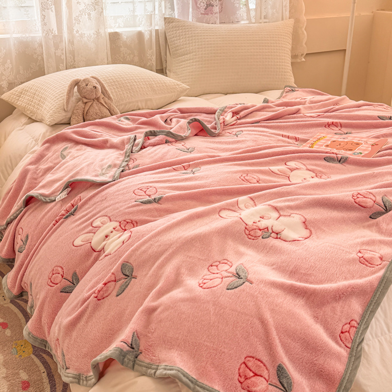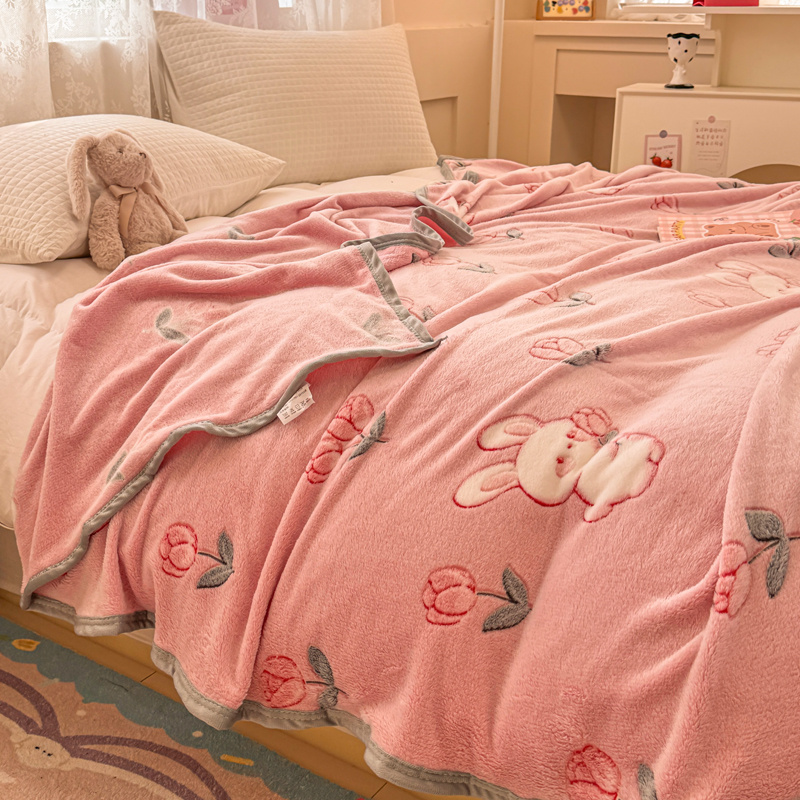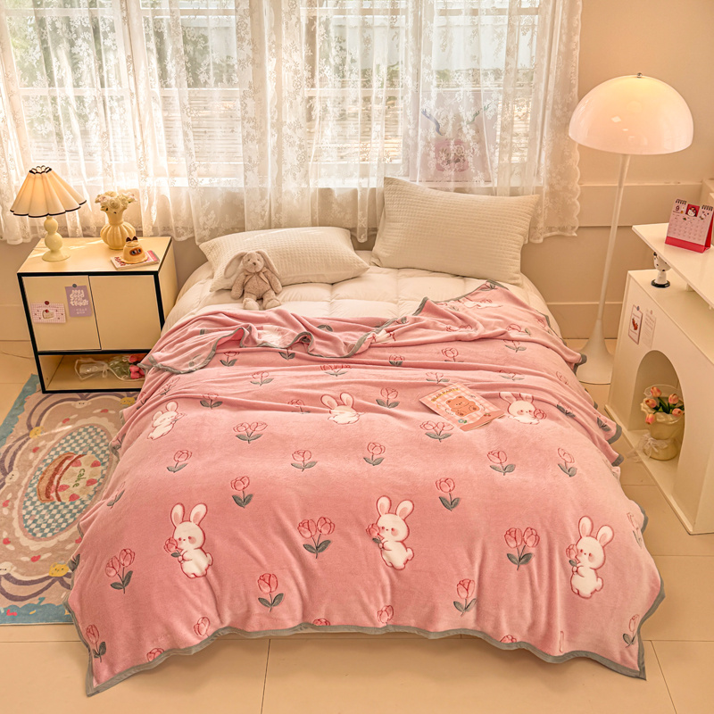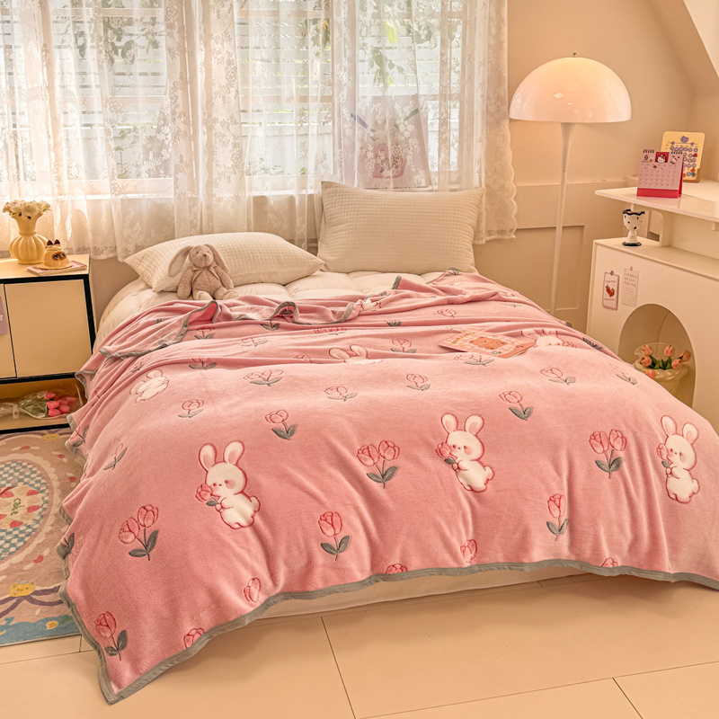 慕尚家纺 2025新款高克重加厚雪花绒毛毯毯子 粉白兔