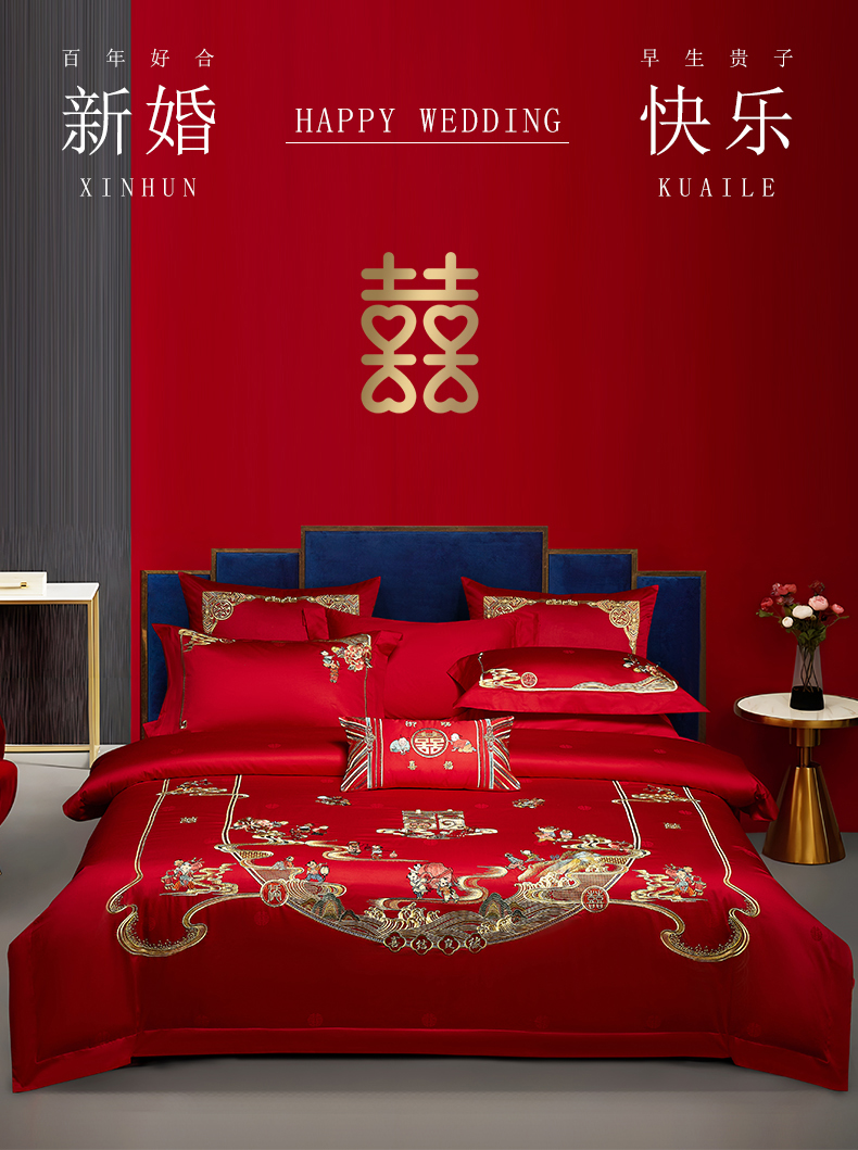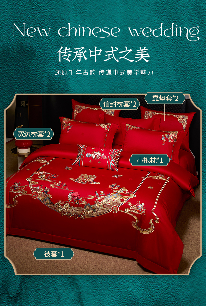当前位置: 91家纺网 > 商品网购 > 床品套件 > 四件套 > 婚庆四件套 > 高大尚 2025新款长绒棉提花四件套新中式系列 万事胜喜