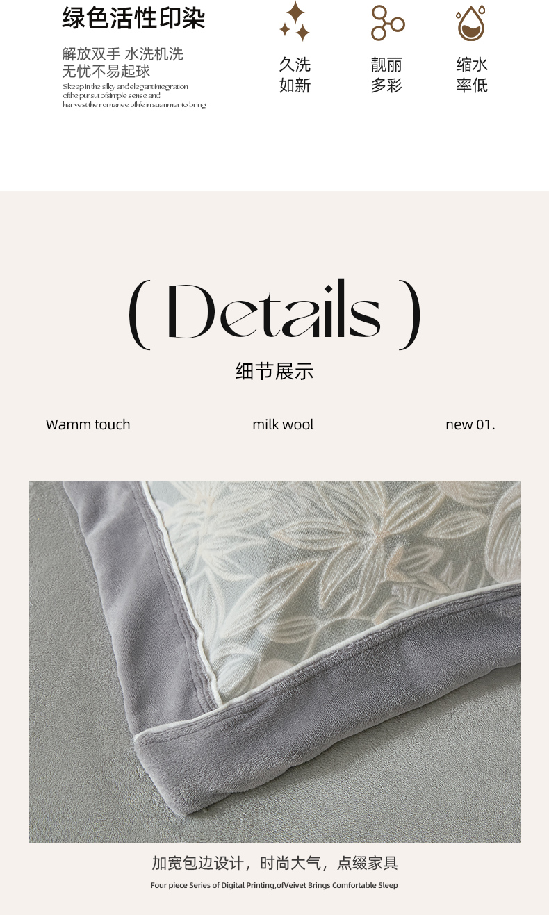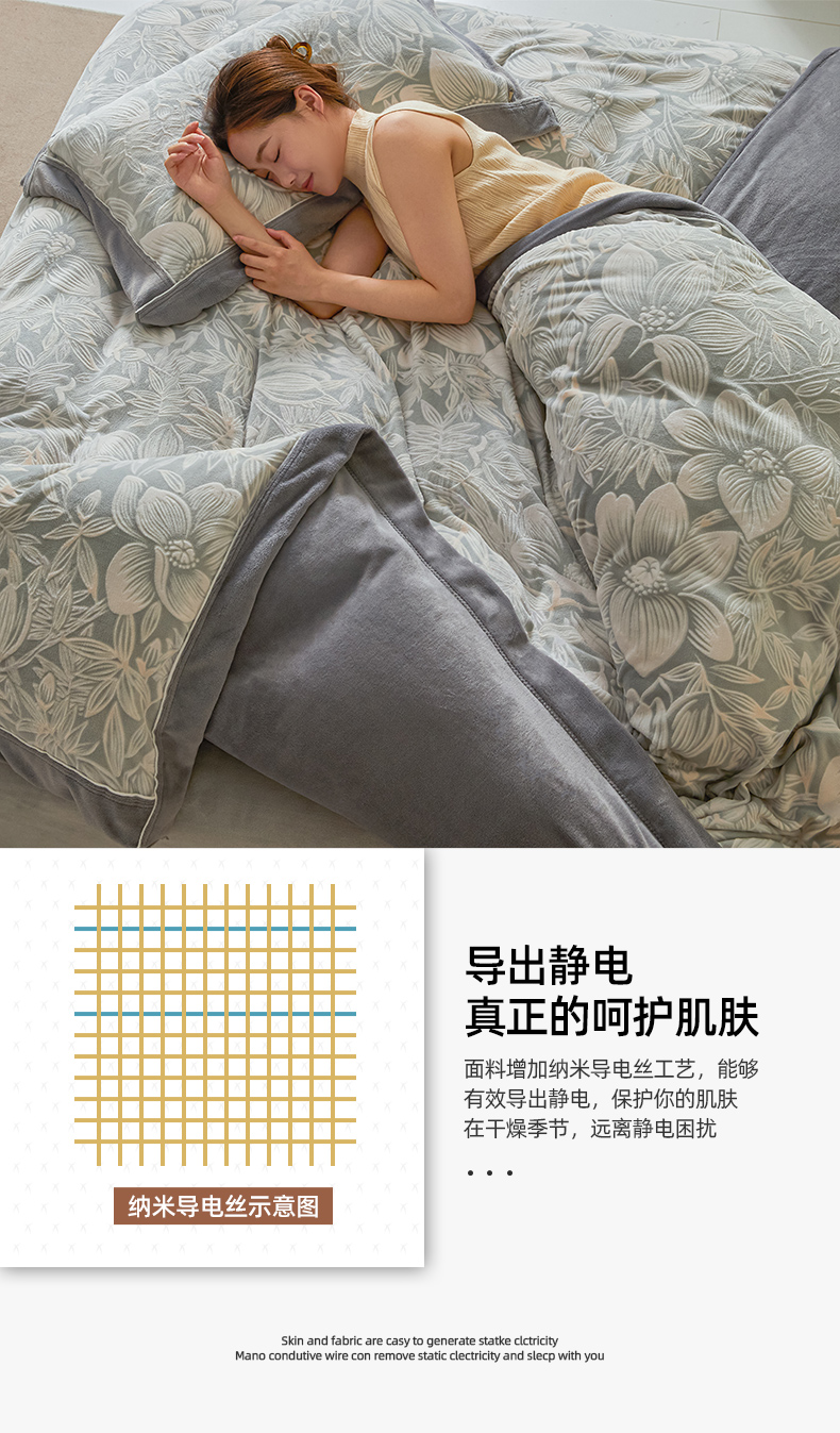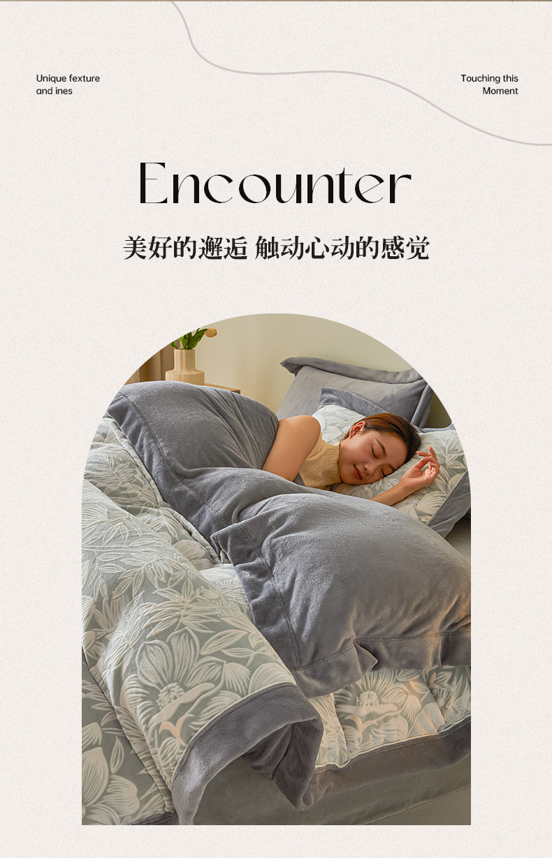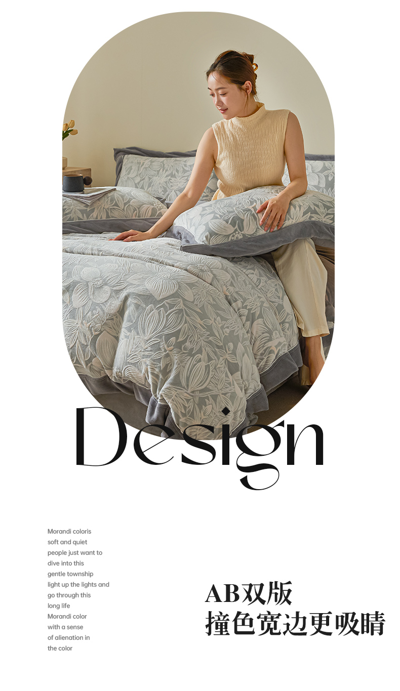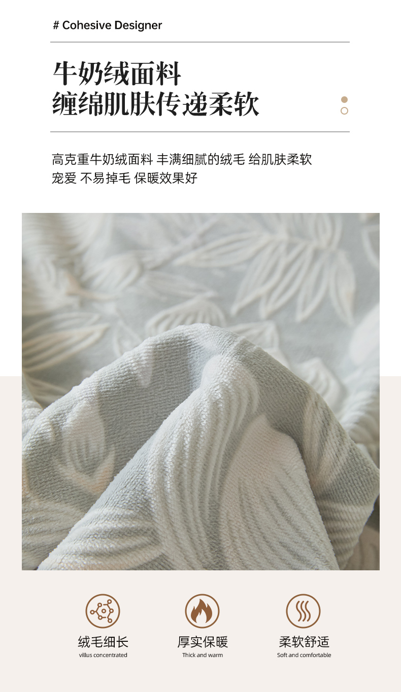商品名称:全季家居 2024新款A类高克重5D立体浮雕宽边牛奶绒加厚保暖被套单件 玉兰花-灰