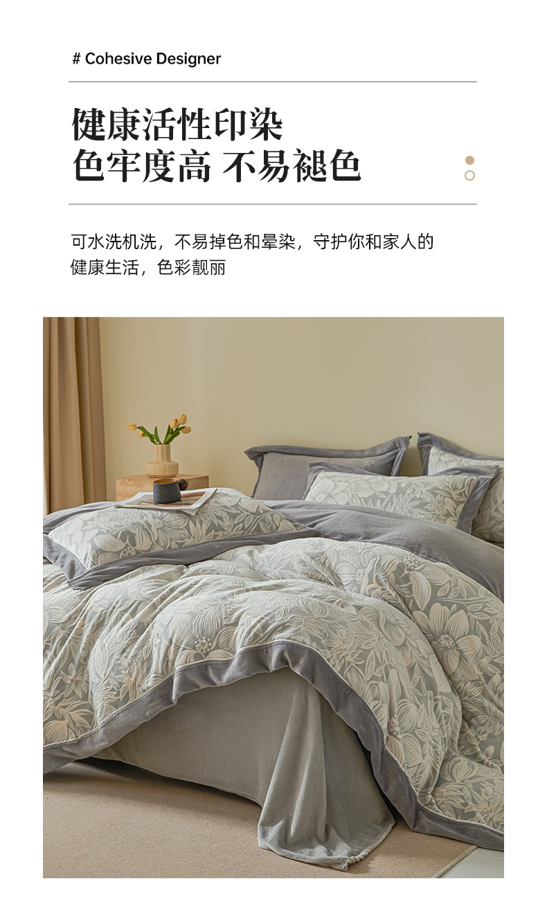 全季家居 2024新款A类高克重5D立体浮雕宽边牛奶绒加厚保暖被套单件 玉兰花-灰