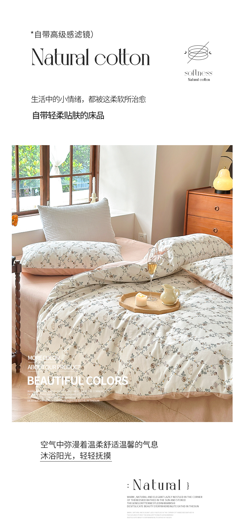 (总)优彩 2025新款全棉双层纱四件套,采花兔,彩蘑菇,初暖,粉小花,花栖,恋花小径,萝蔓,落山秋,南瓜派,清然,瑞莎,小熊派,紫葡萄,花栖-咖