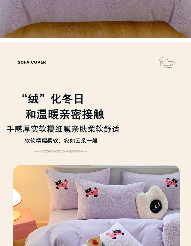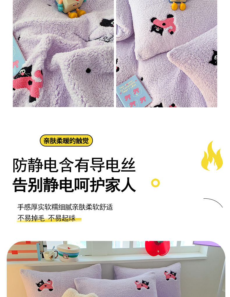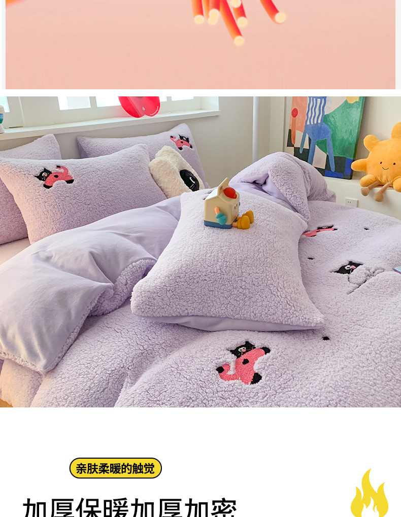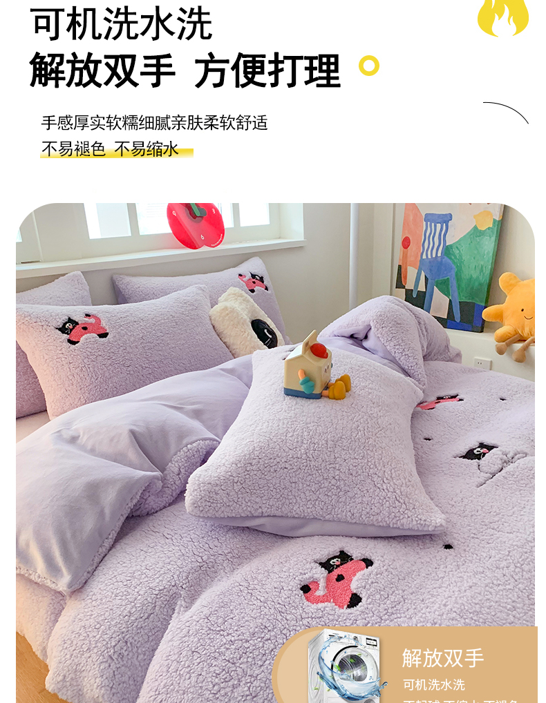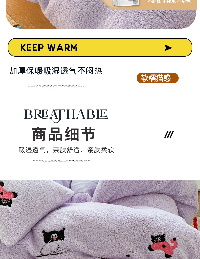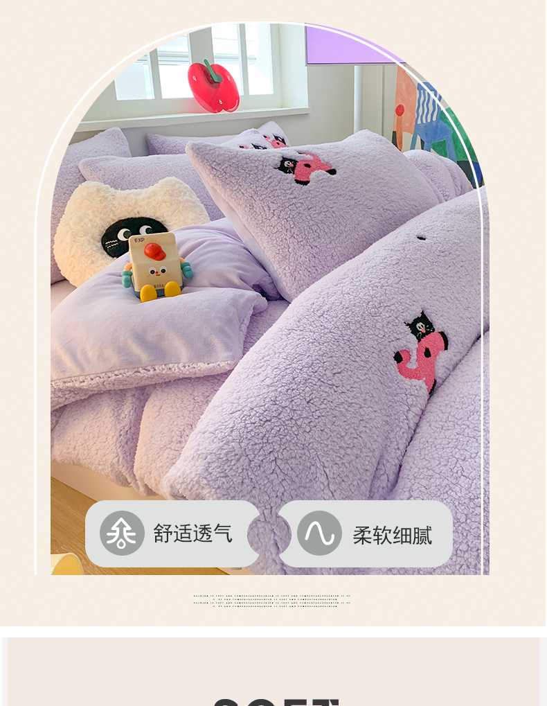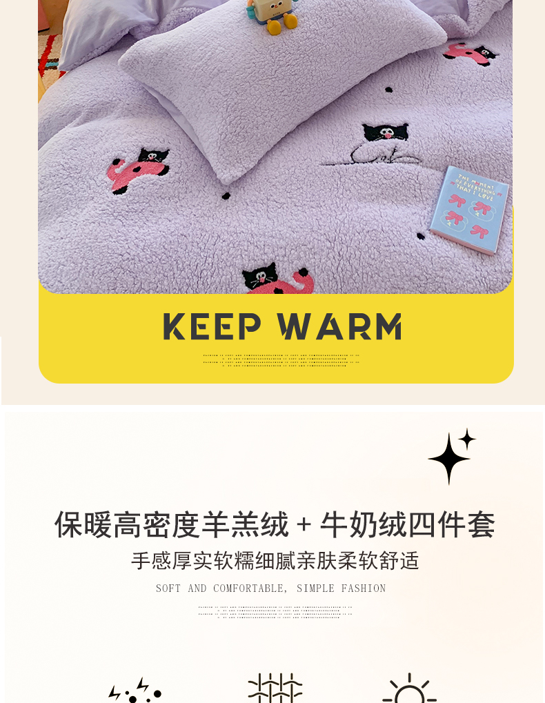商品名称:2025新款高克重加厚羊羔绒牛奶绒四件套 小猫紫