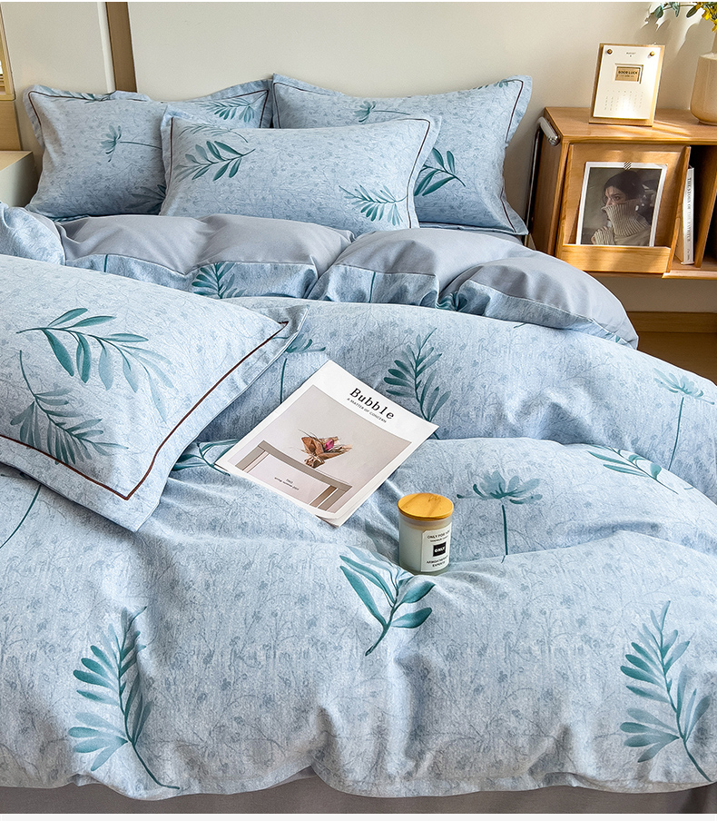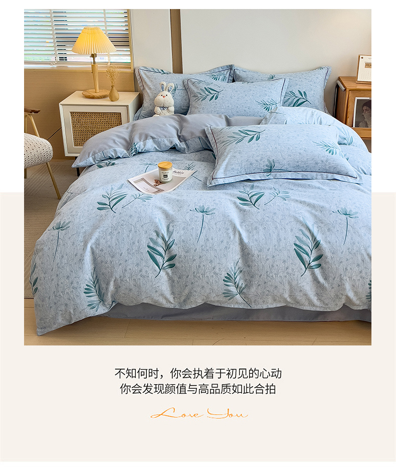 芃成家纺 2024新款原棉加厚生态磨毛四件套 蓝町