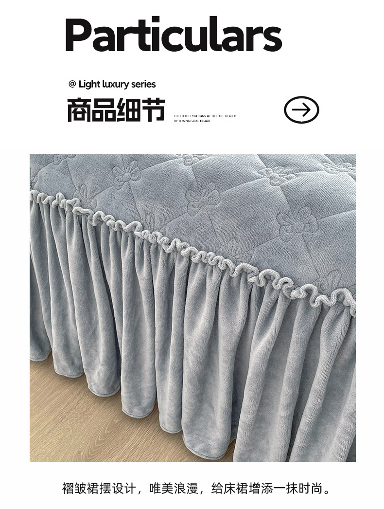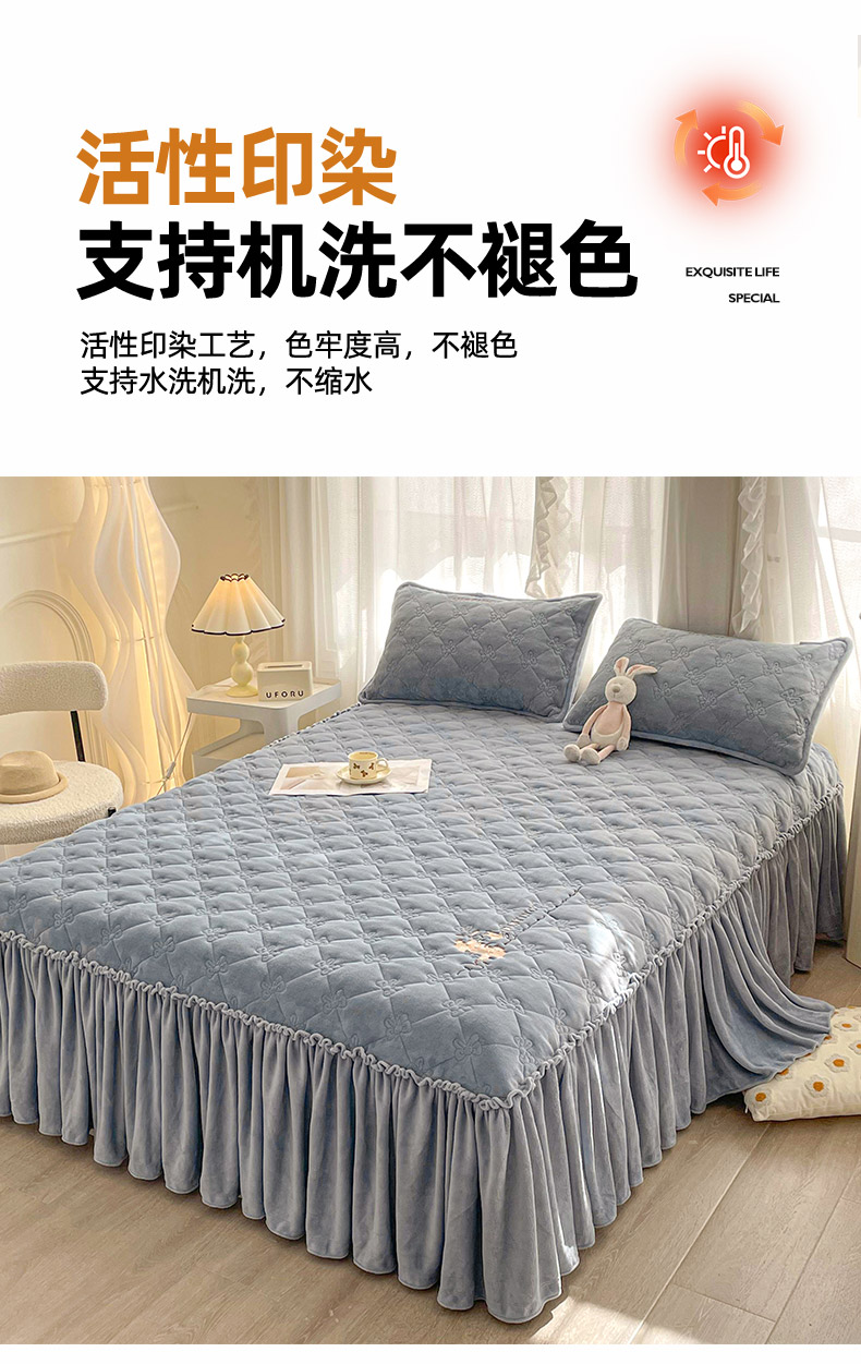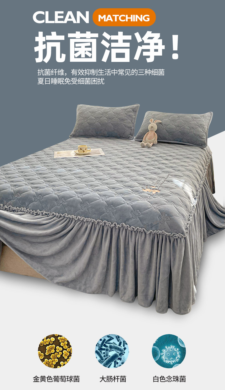 • 91家纺网 家纺一手货源 找家纺 好眠好梦家纺 2024新款A类牛奶绒床裙-百合花开 兰灰