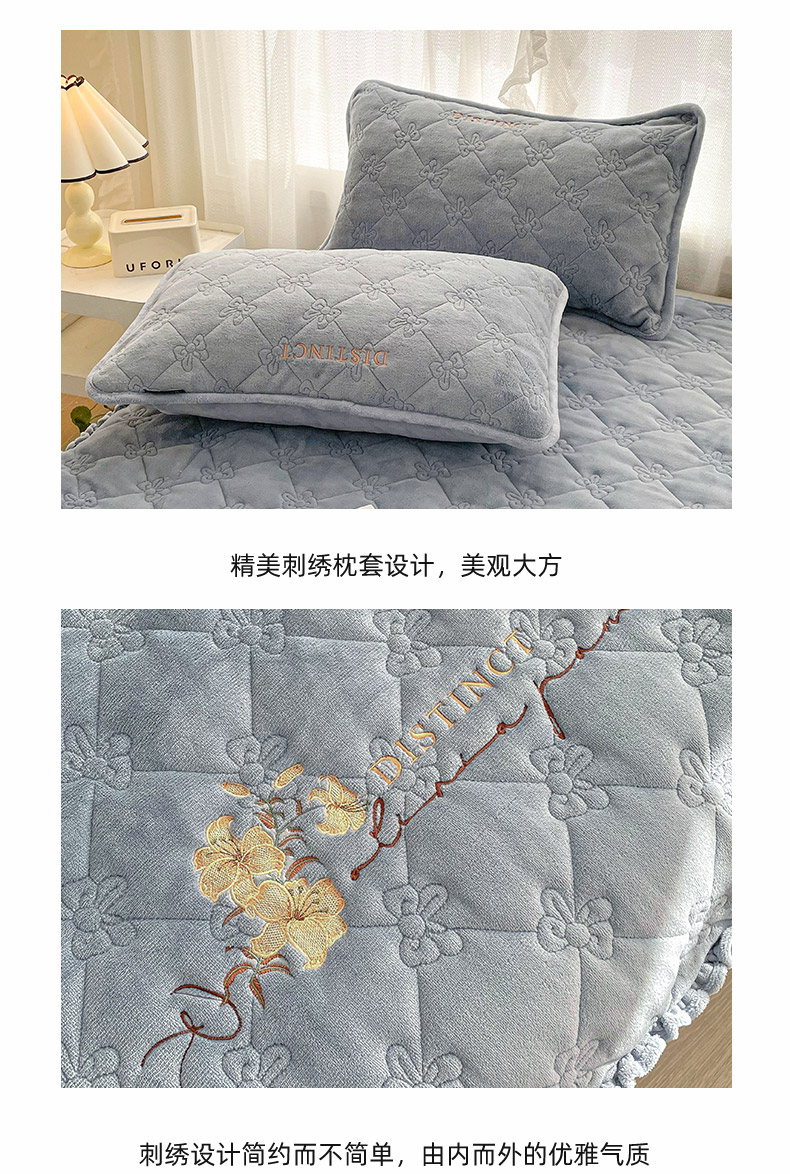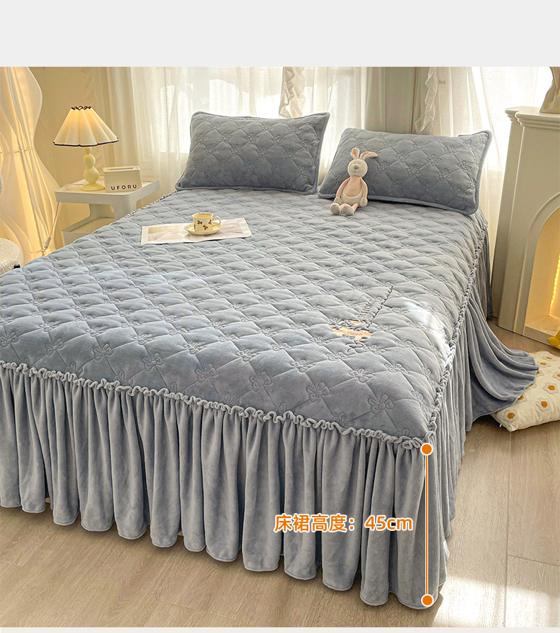 好眠好梦家纺 2024新款A类牛奶绒床裙-百合花开 兰灰