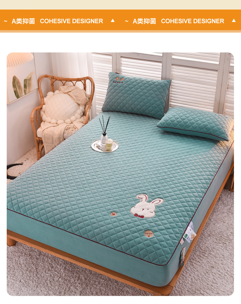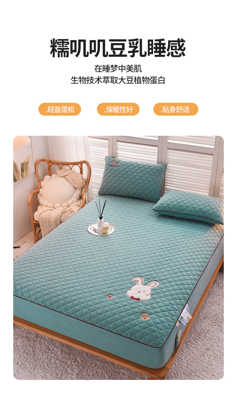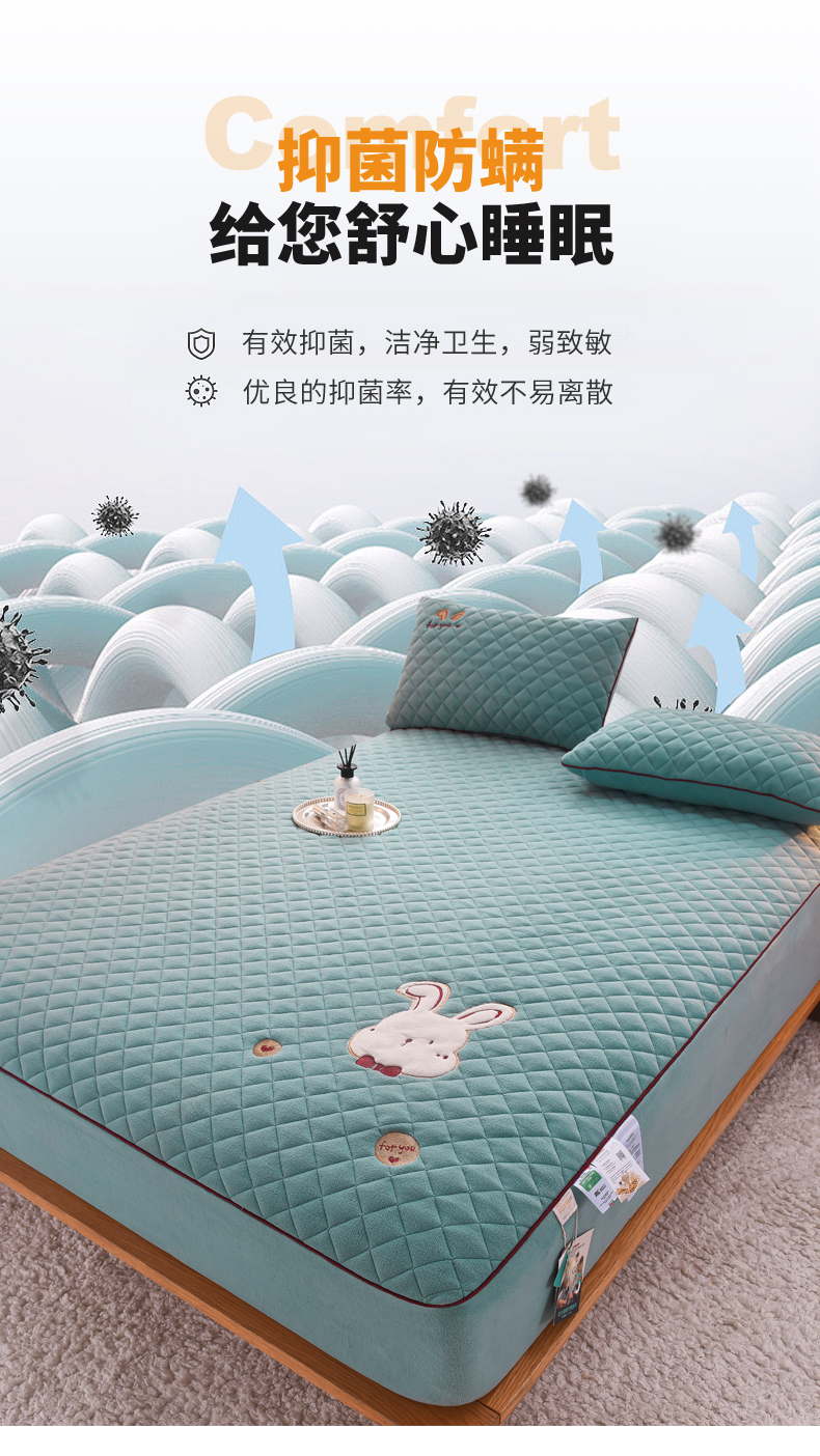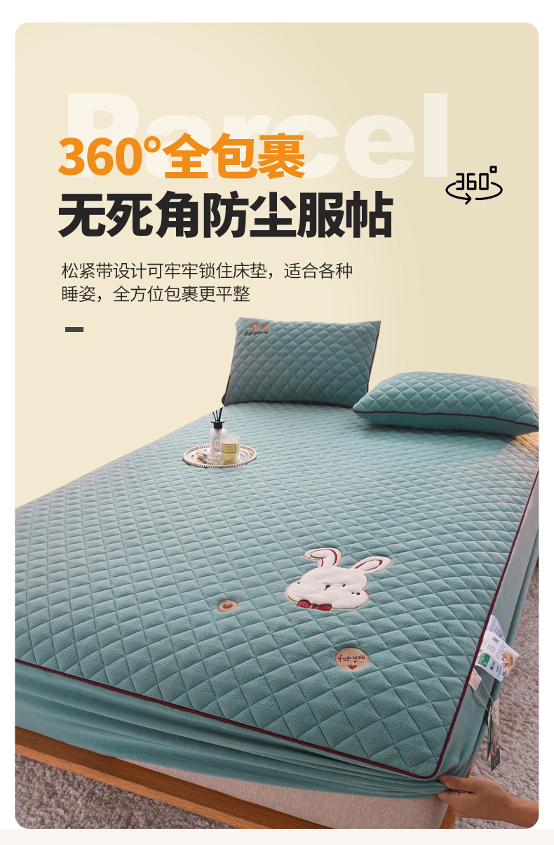 • 91家纺网 家纺一手货源 找家纺 好眠好梦家纺 2024新款叮当兔牛奶绒绣花单床笠 雾兰床笠
