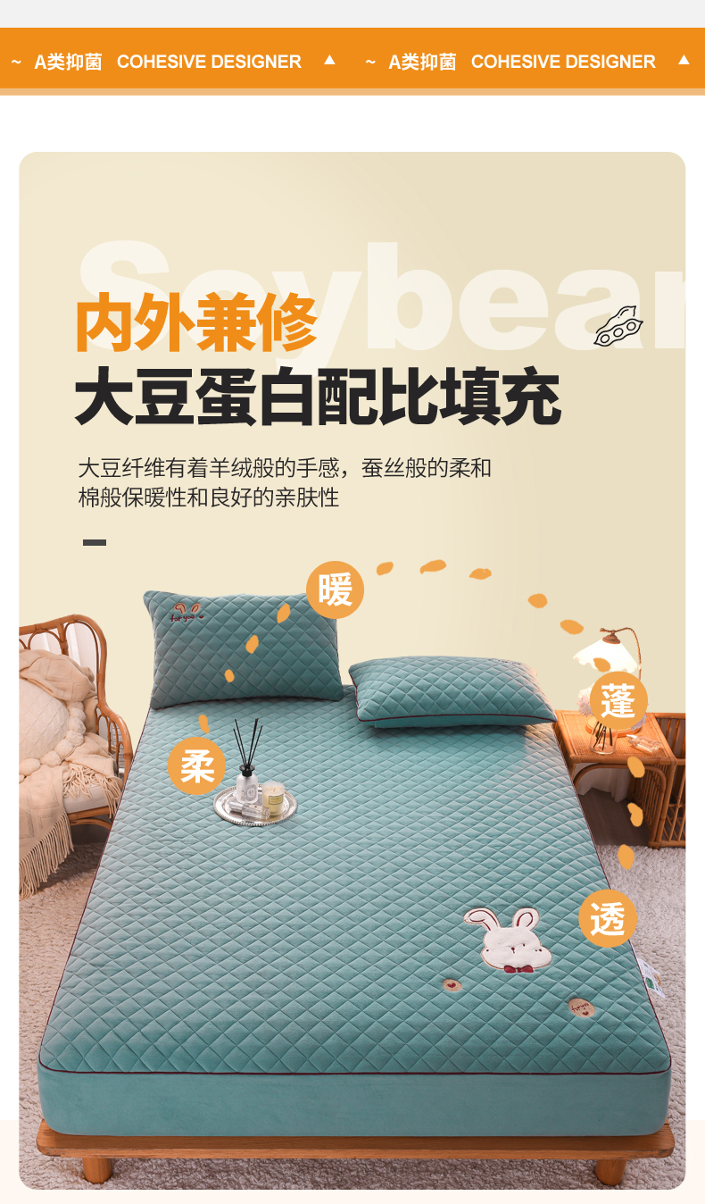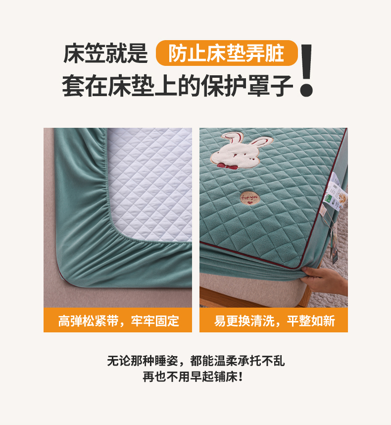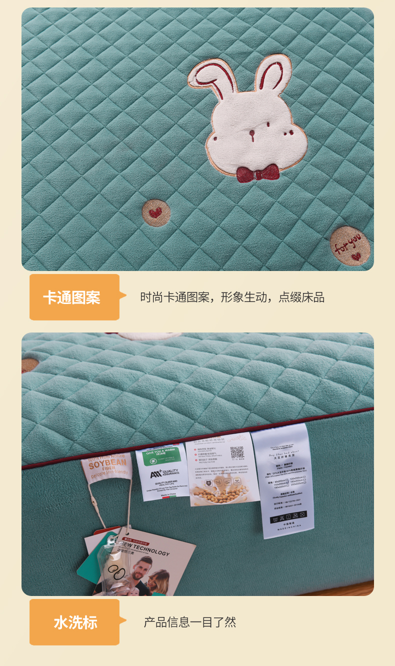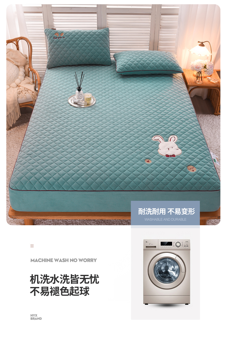 • 91家纺网 家纺一手货源 找家纺 好眠好梦家纺 2024新款叮当兔牛奶绒绣花单床笠 雾兰床笠