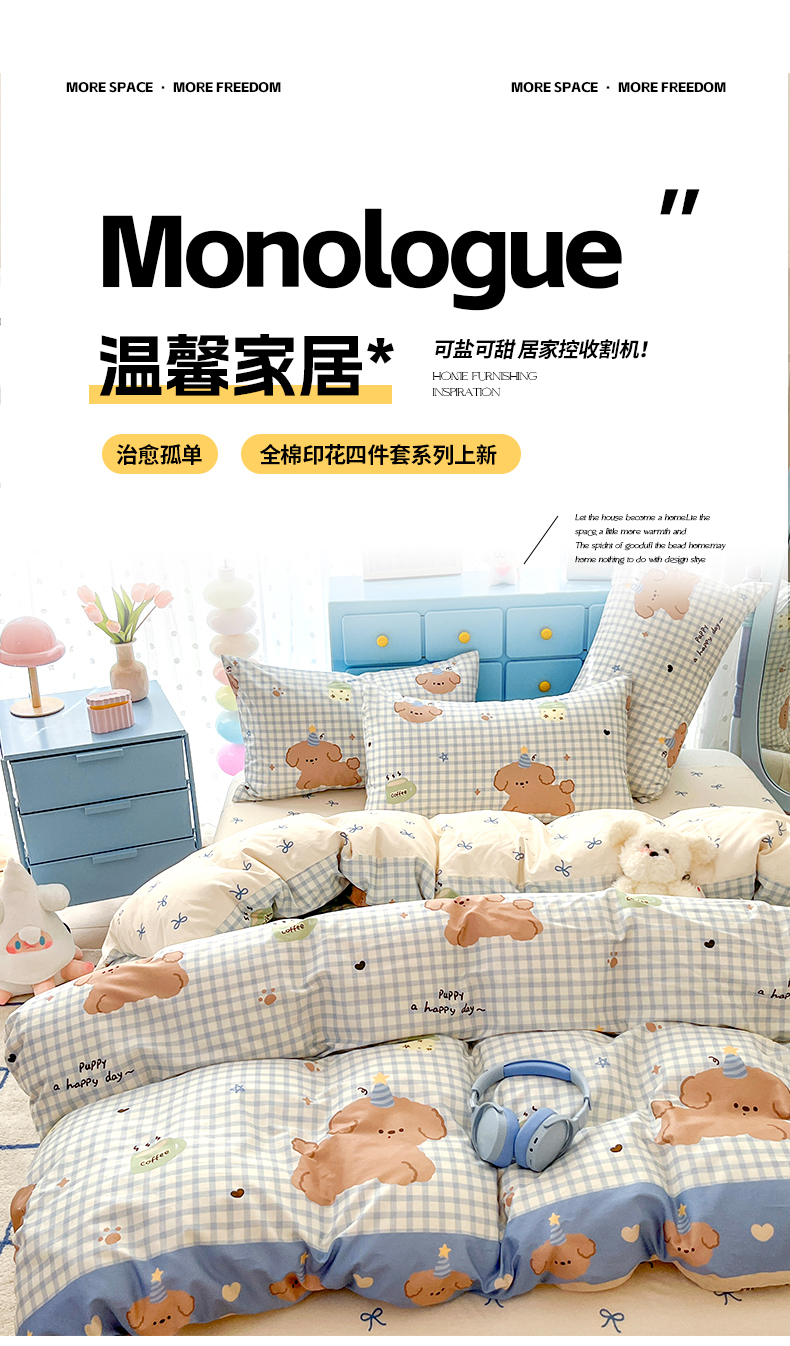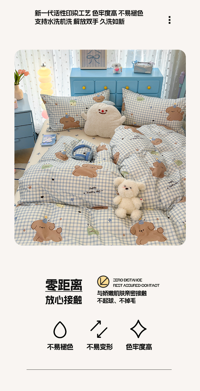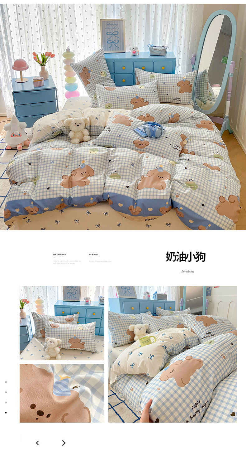 当前位置: 91家纺网 > 商品网购 > 床品套件 > 四件套 > 全棉普通四件套 > 寻米 2024新款全棉印花四件套 奶油小狗