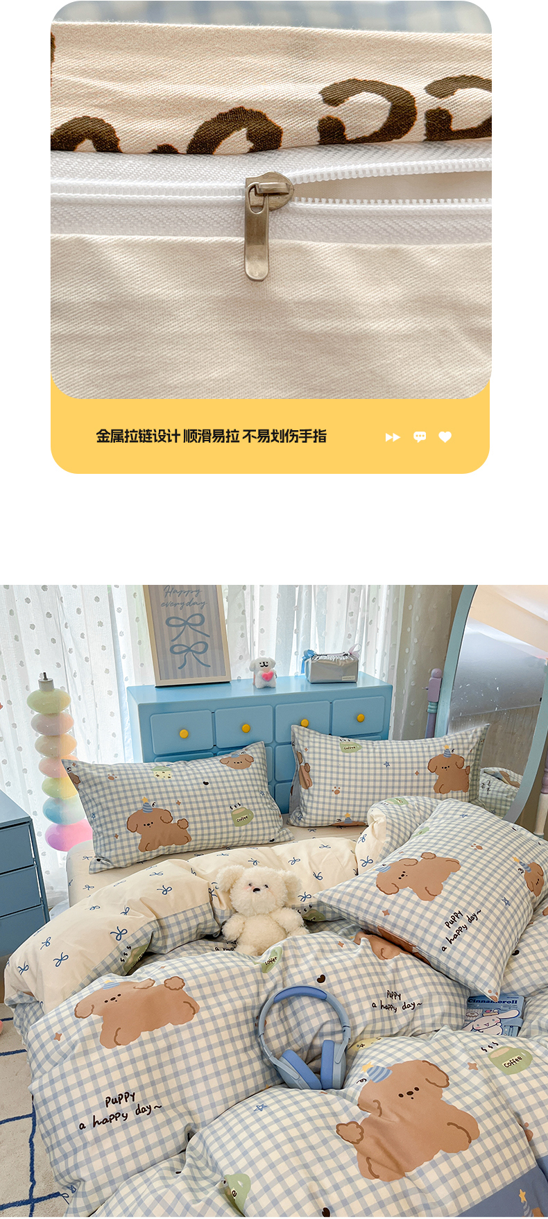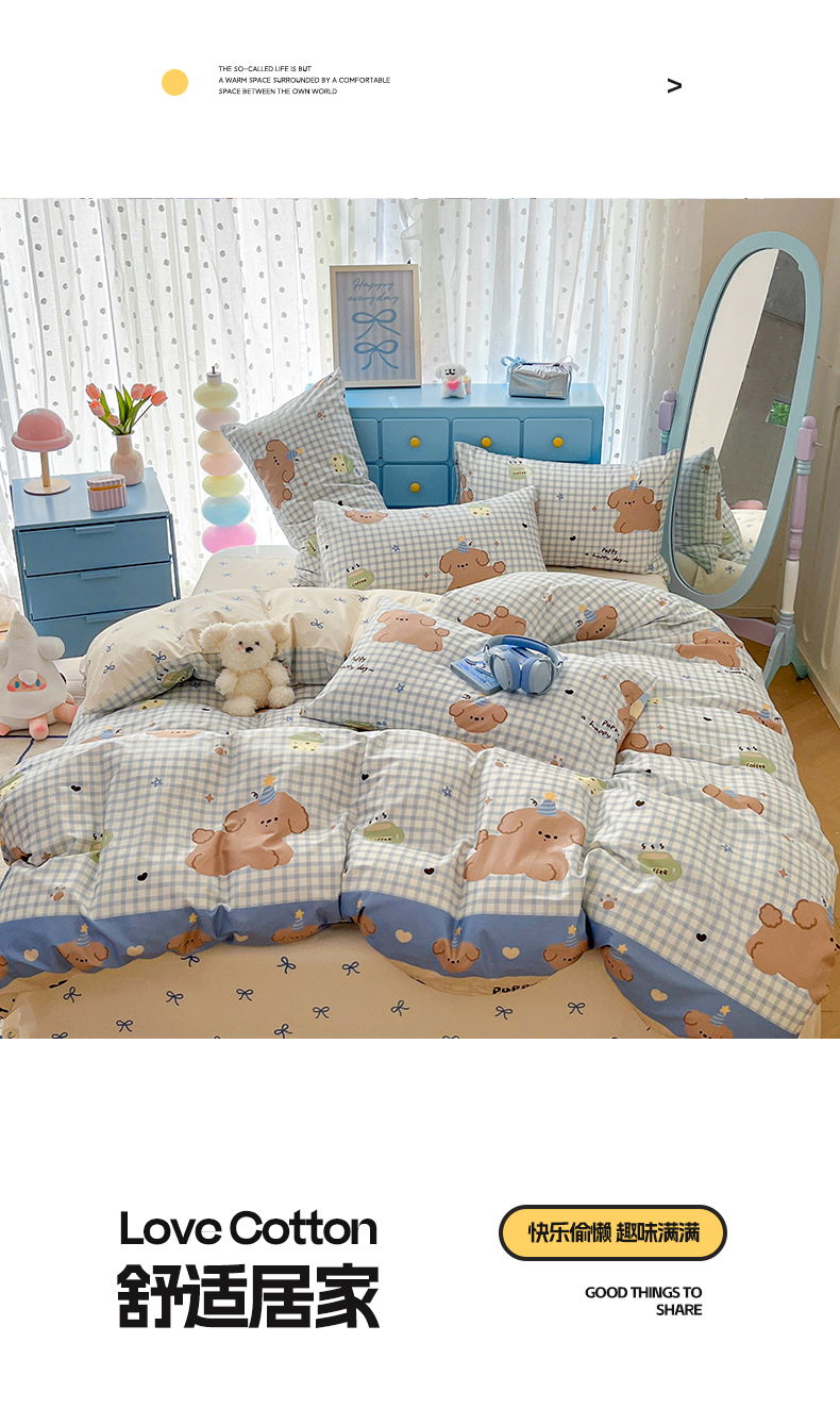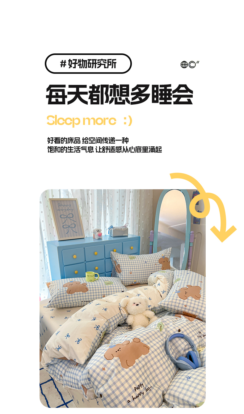 当前位置: 91家纺网 > 商品网购 > 床品套件 > 四件套 > 全棉普通四件套 > 寻米 2024新款全棉印花四件套 奶油小狗