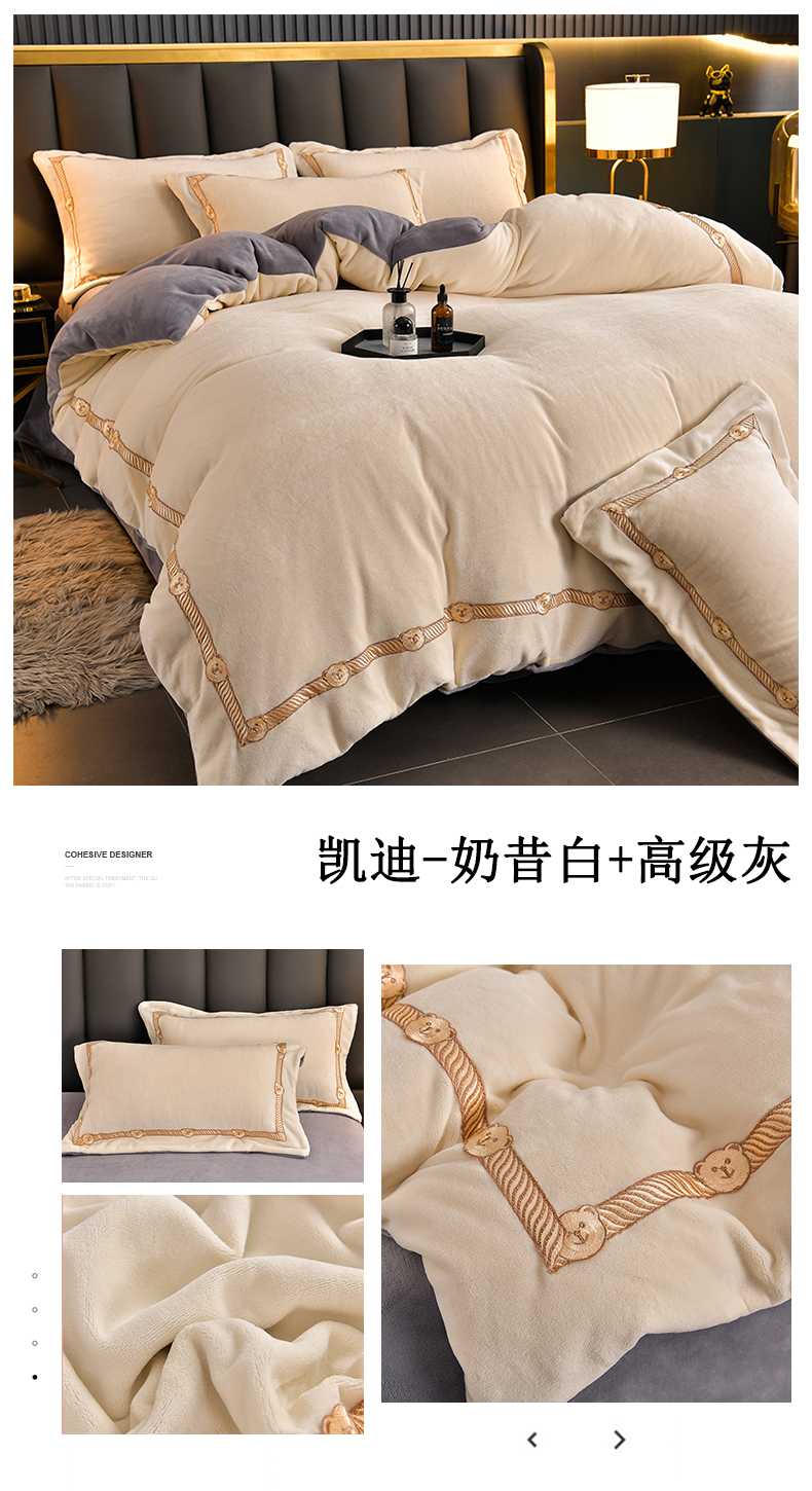(总)云家 (包含买家秀)2023新款高克重牛奶绒纯色双拼刺绣四件套珊瑚绒 凯迪系列,凯迪-奶昔白+橙,凯迪-宾利兰+米驼,凯迪-高级灰+米驼,凯迪-蜜粉+高级灰,凯迪-宾利兰+高级灰,凯迪-奶昔白+豆绿,凯迪-奶昔白+高级灰,凯迪-香芋紫+蜜粉
