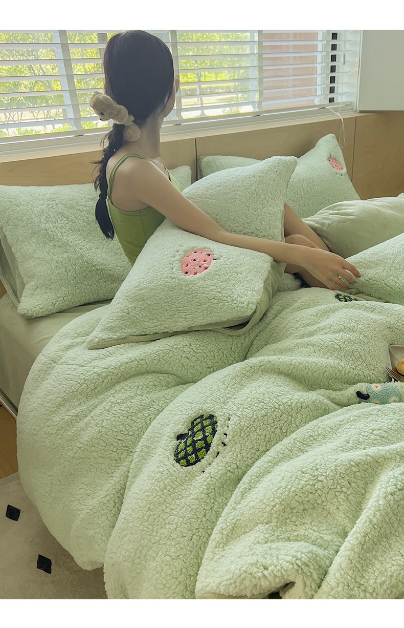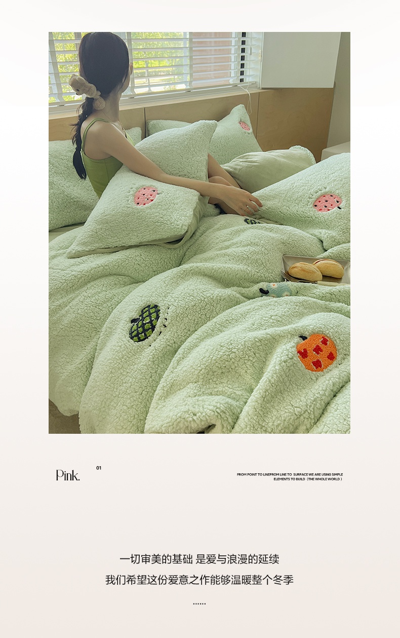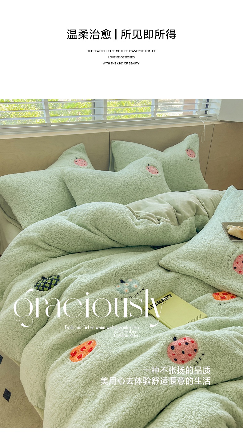 当前位置: 91家纺网 > 商品网购 > 床品套件 > 四件套 > 牛奶绒四件套 > 晨曦家纺 2024新款加厚羊羔绒牛奶绒毛巾绣四件套 羊羔绒-南瓜派对浅水绿