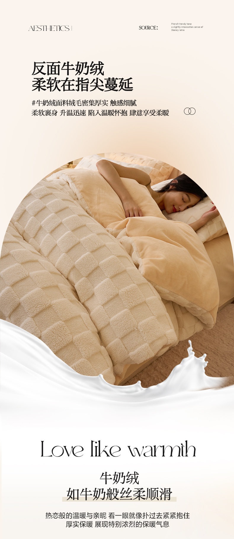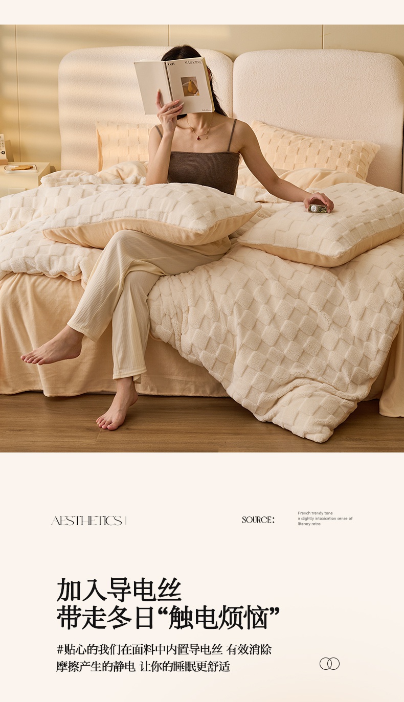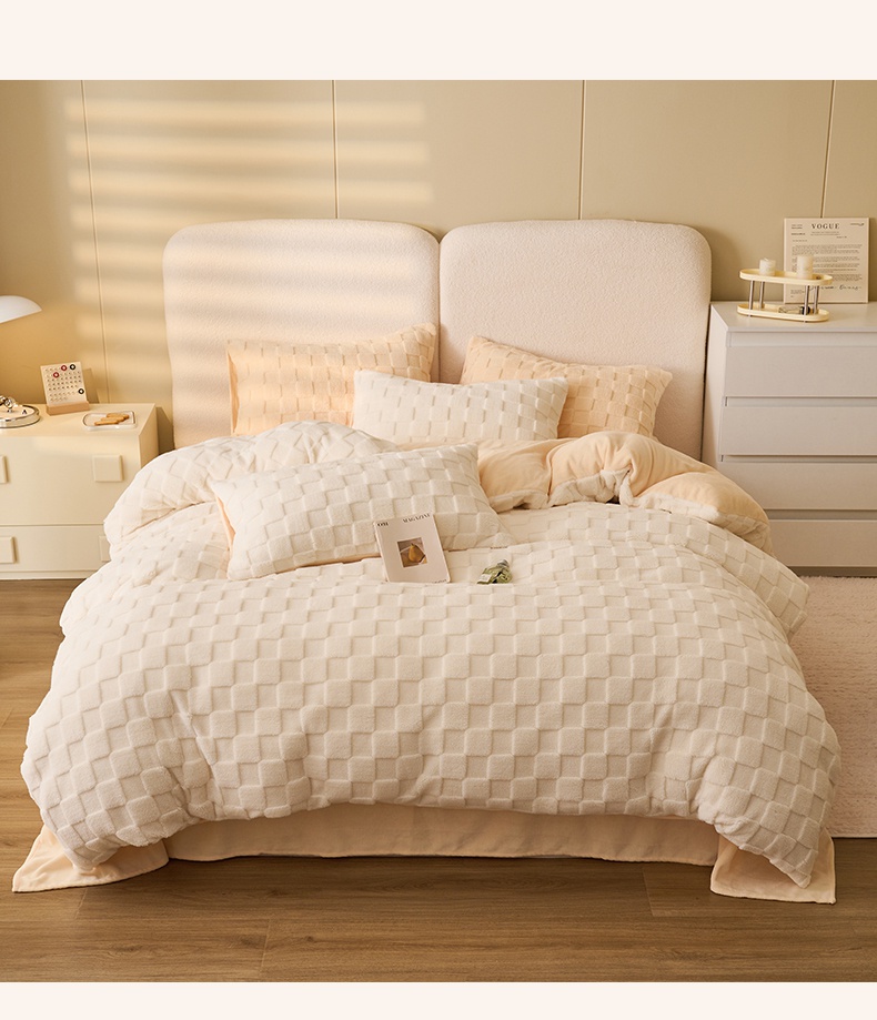 当前位置: 91家纺网 > 商品网购 > 床品套件 > 四件套 > 牛奶绒四件套 > 晨曦家纺 2024新款塔芙绒牛奶绒四件套-初暖系列 初暖-白拼奶黄