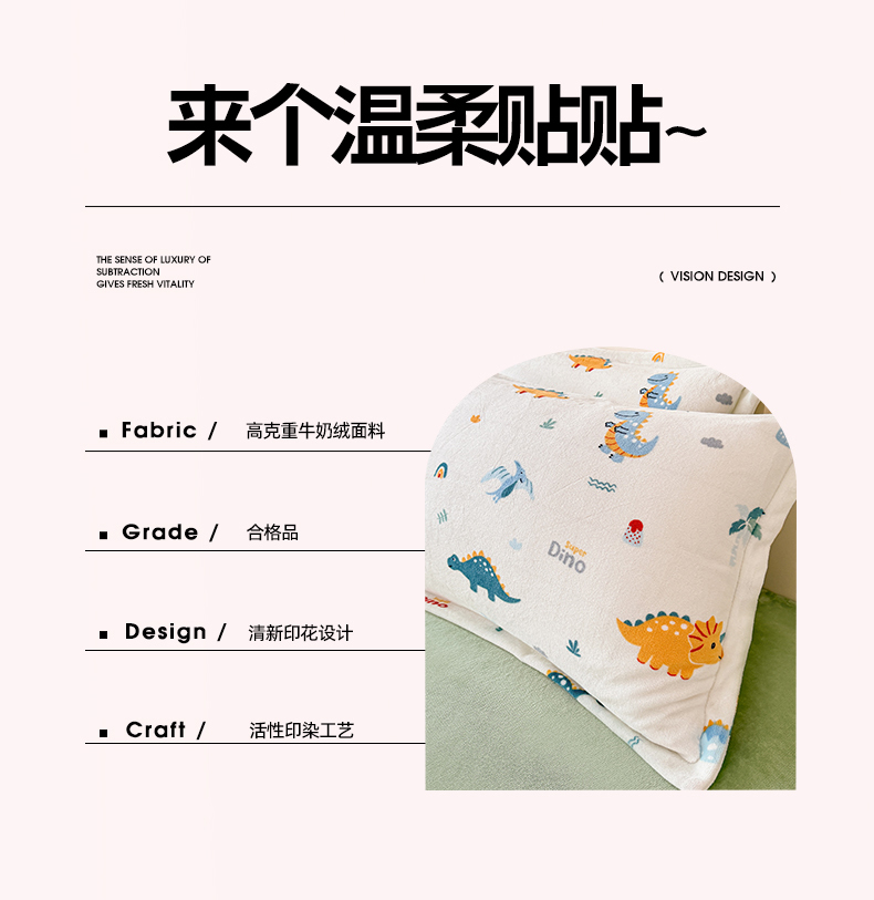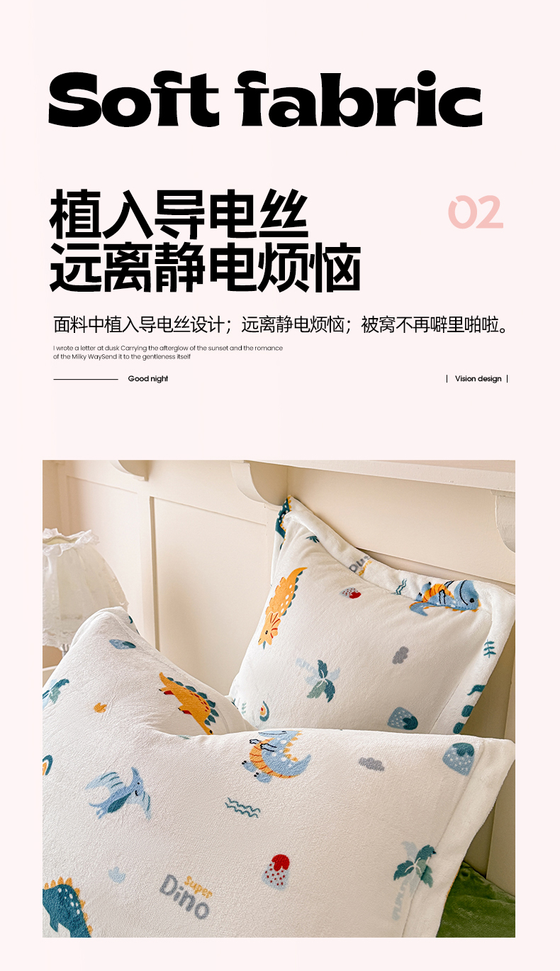 商品名称:妖妖家纺 2024新款200克牛奶绒单枕套 恐龙时代
