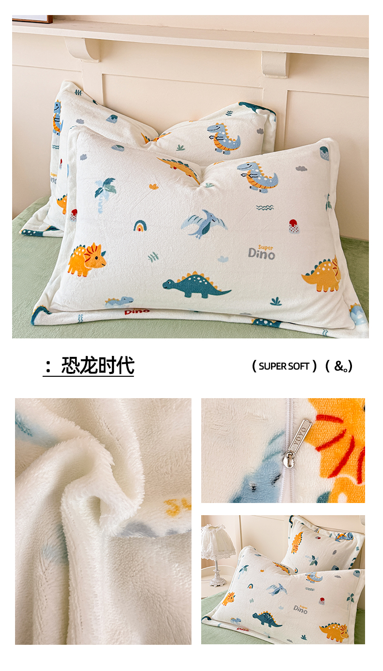 妖妖家纺 2024新款200克牛奶绒单枕套 恐龙时代