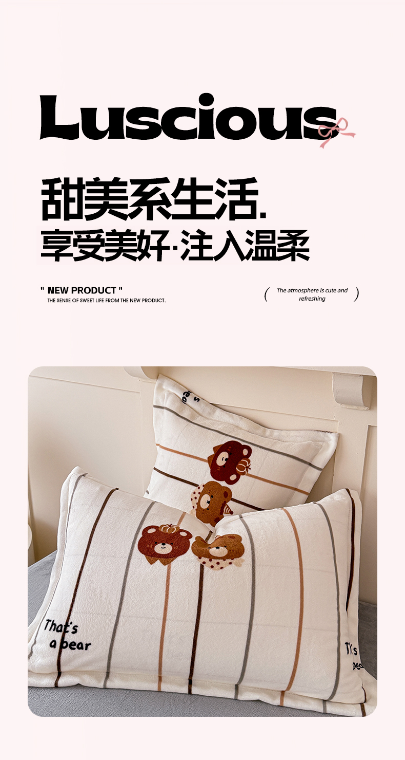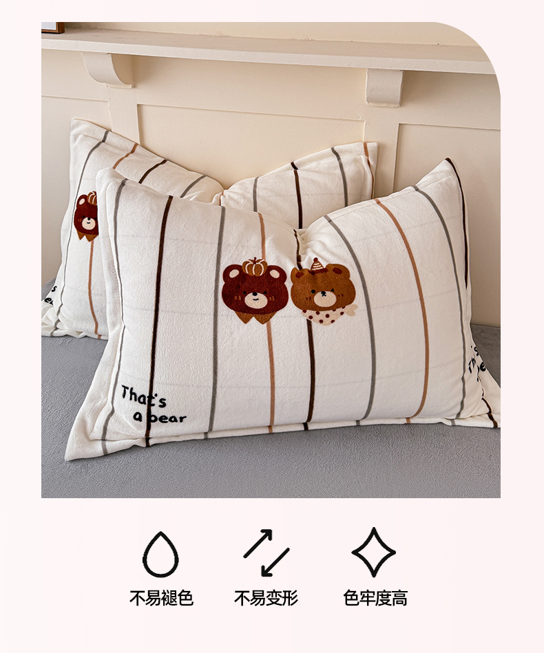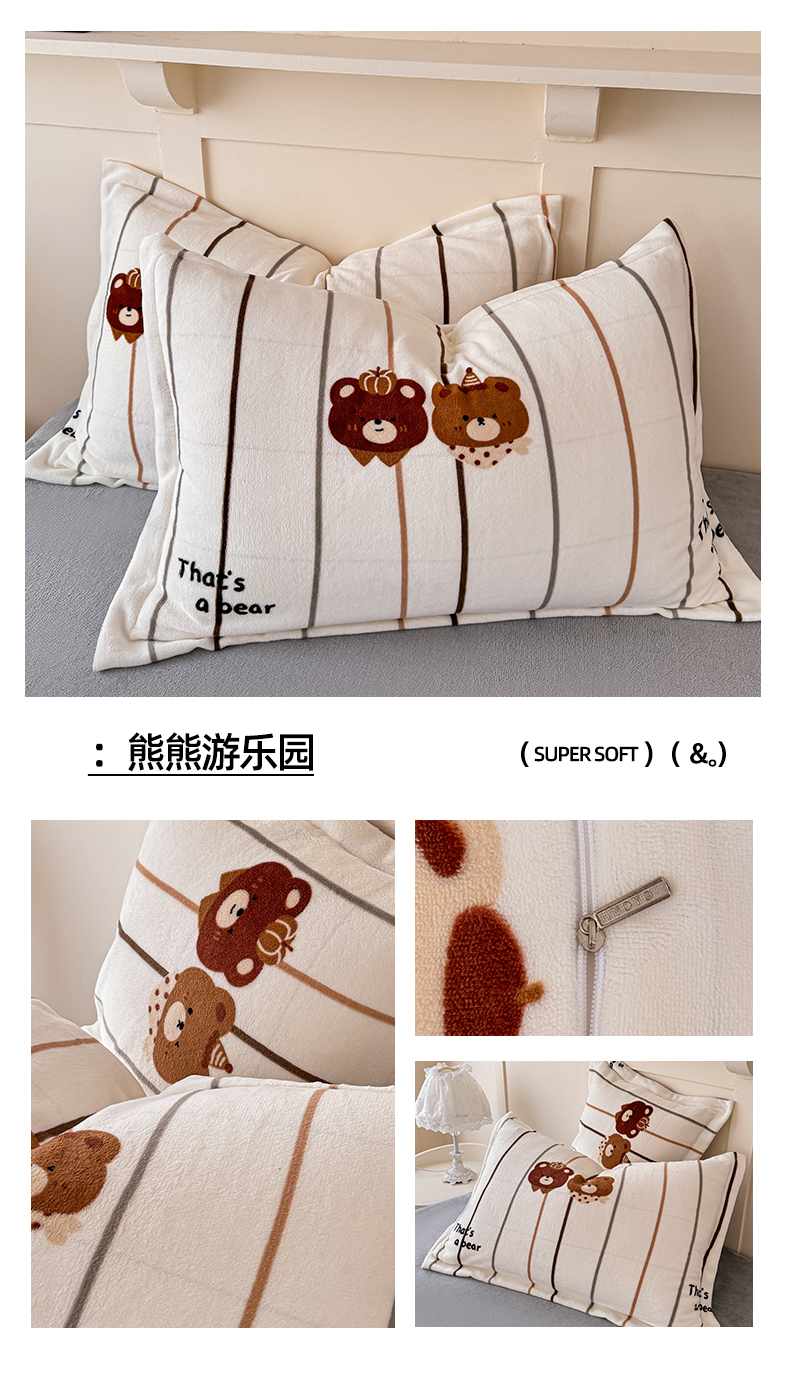 商品名称:妖妖家纺 2024新款200克牛奶绒单枕套 熊熊游乐园