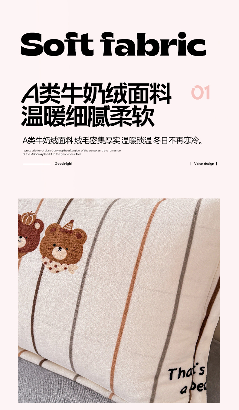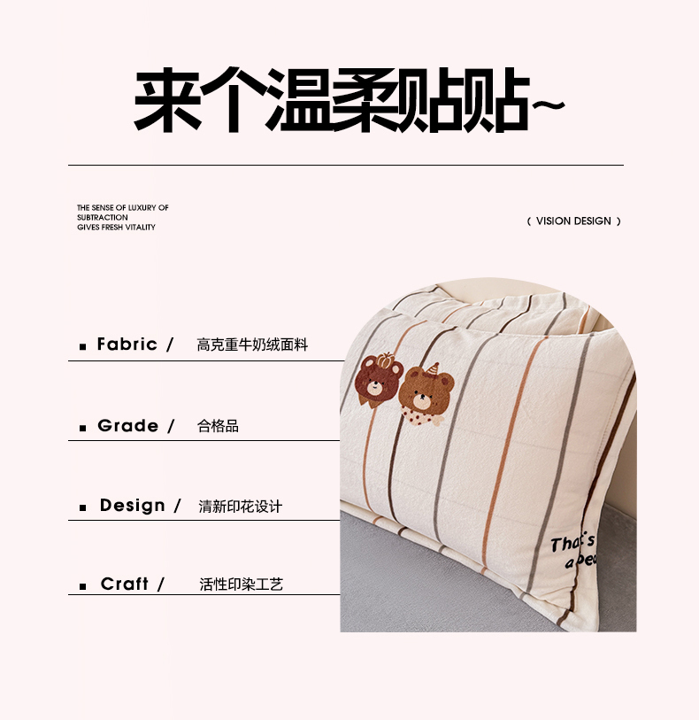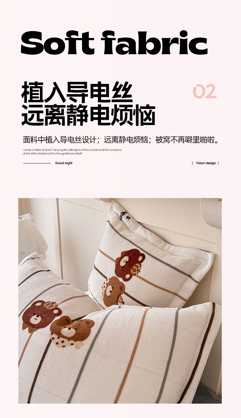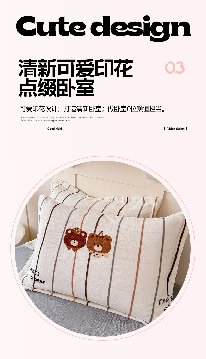 商品名称:妖妖家纺 2024新款200克牛奶绒单枕套 熊熊游乐园