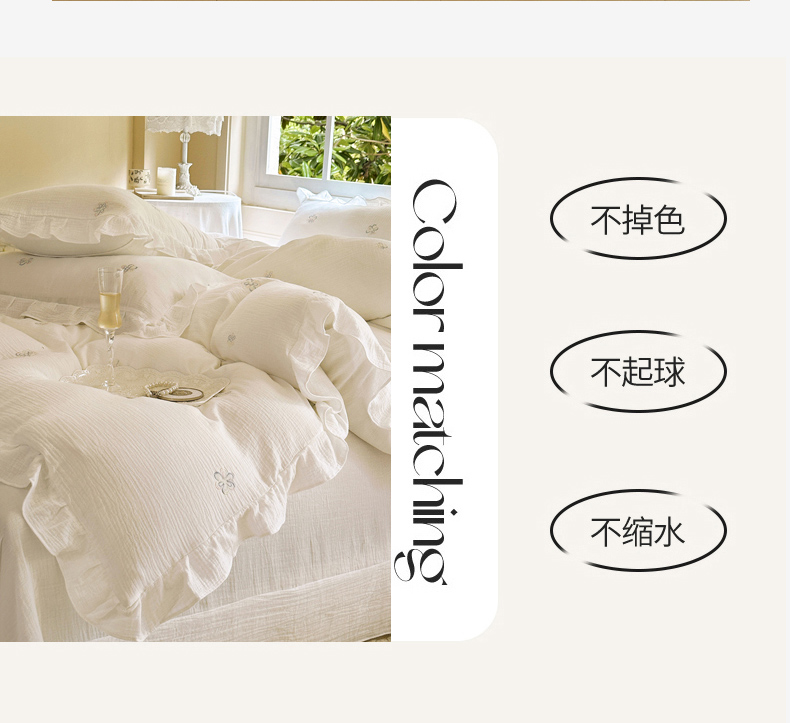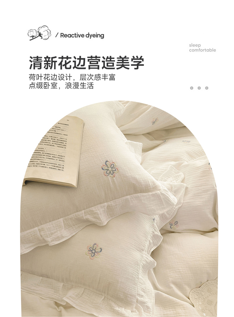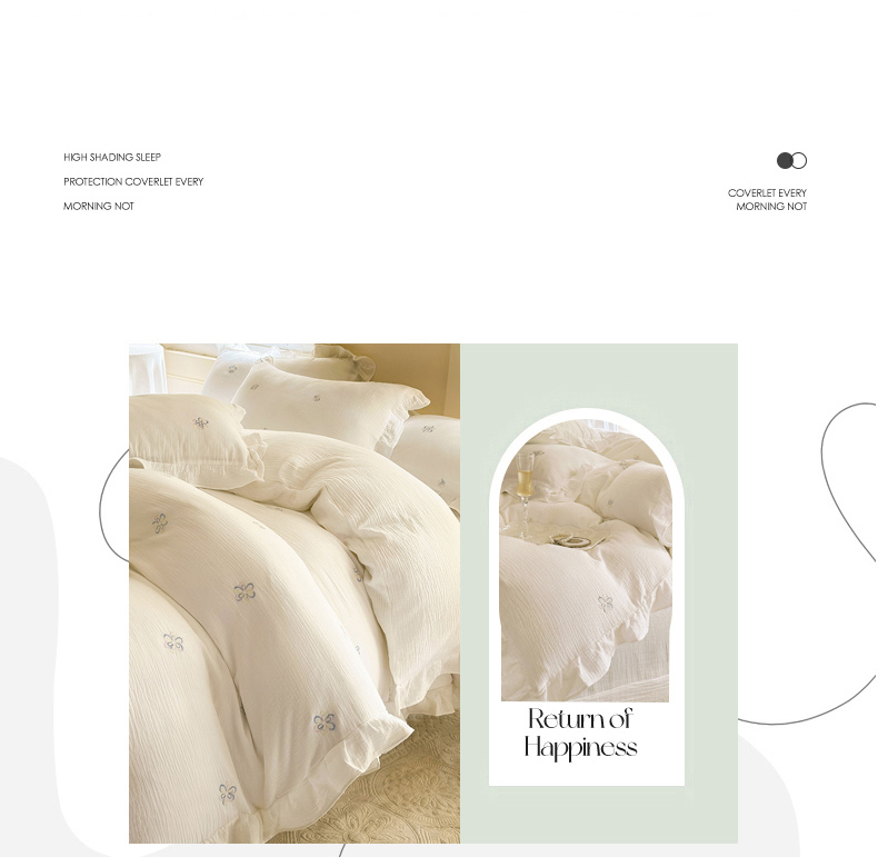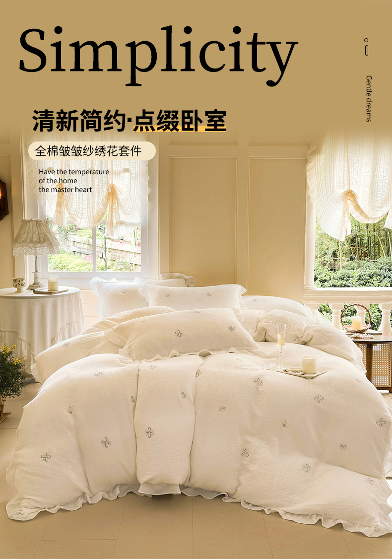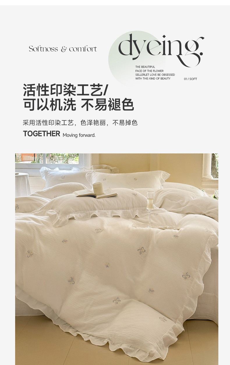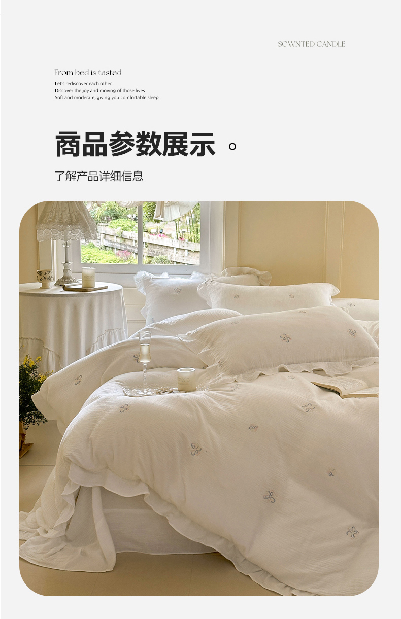 商品名称:木楌 2024全棉皱皱纱荷叶边刺绣工艺款四件套 蝶翼