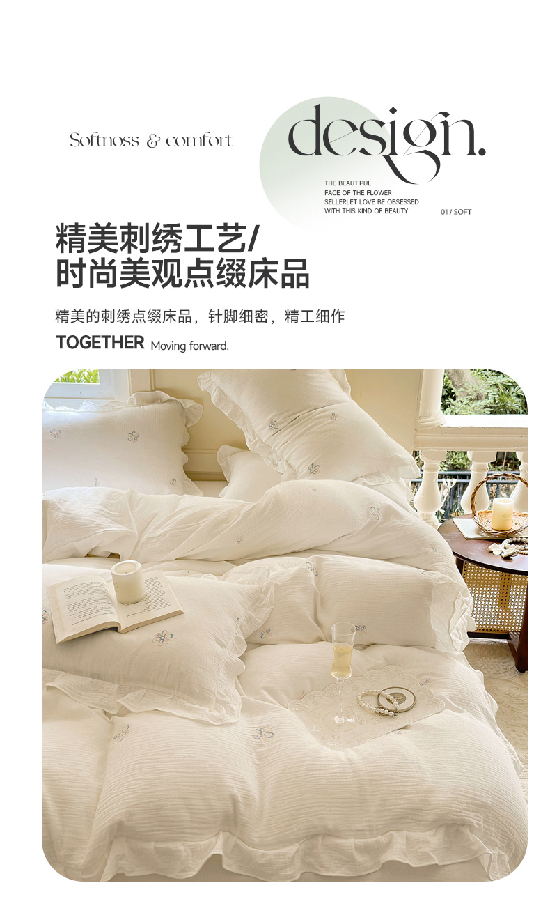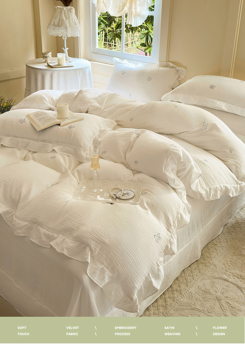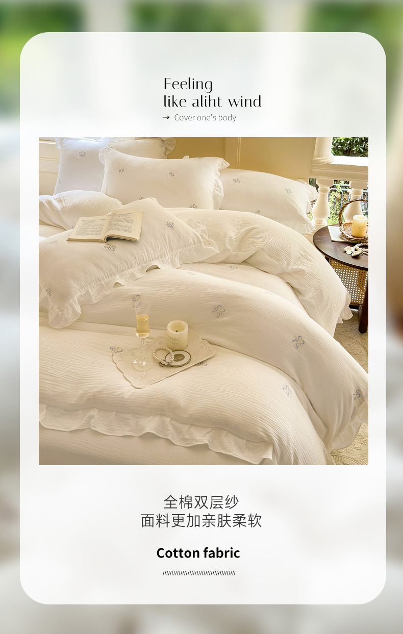 木楌 2024全棉皱皱纱荷叶边刺绣工艺款四件套 蝶翼