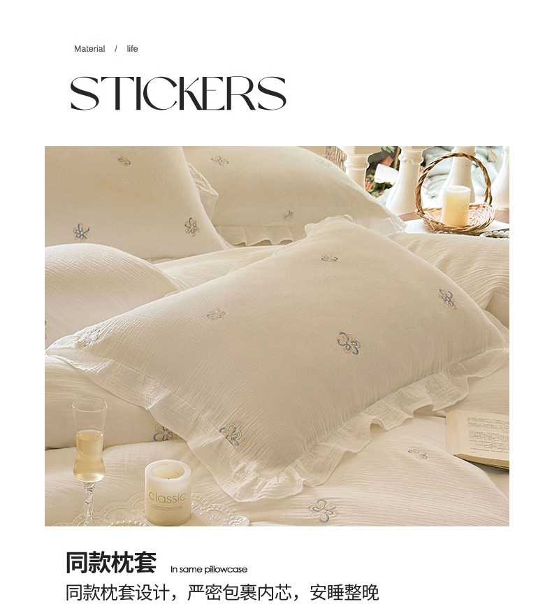 (总)木楌家居2025新款全棉彩点皱皱纱绣花四件套,暗香初醒,星柠微糖,樱草日记,织梦星河