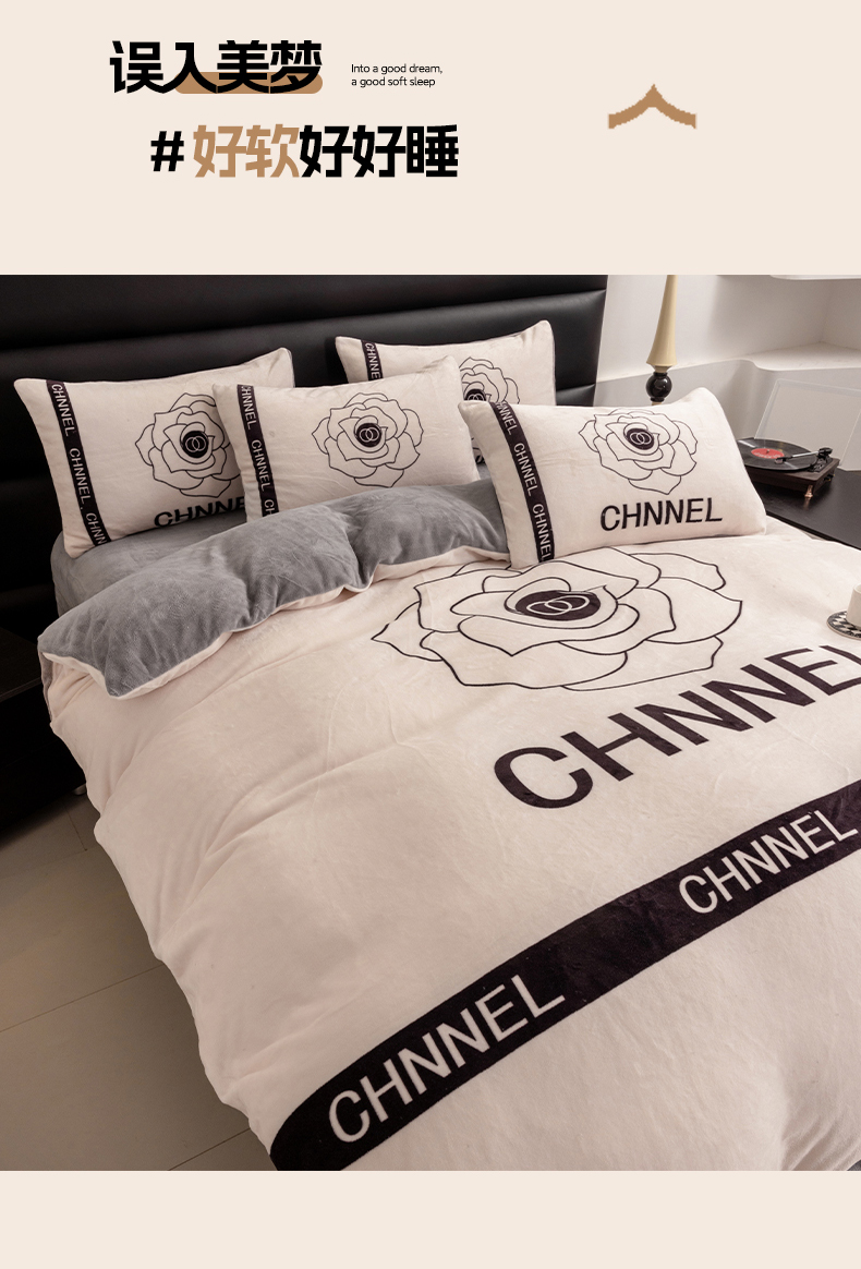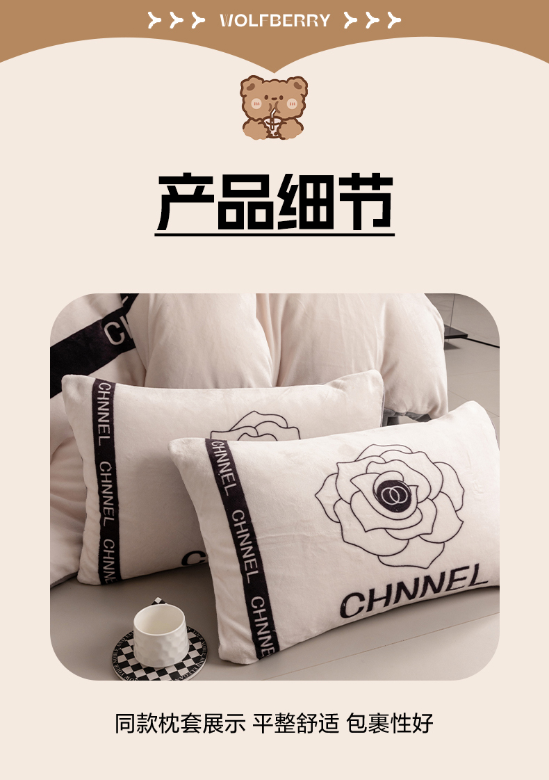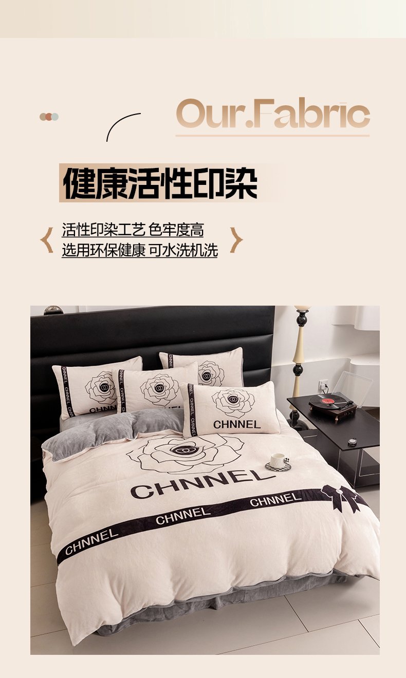 商品名称:摩卡(乐趣) 2024新款高克重牛奶绒大版印花四件套 山茶花