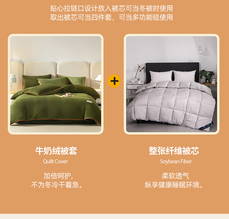 商品名称:(总)吾诺家居 2024 可拆洗牛奶绒冬被被子被芯 二合一被芯