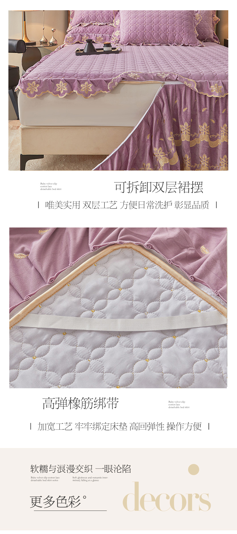 当前位置: 91家纺网 > 商品网购 > 床品套件 > 四件套 > 牛奶绒四件套 > 锦格 2024新款浪漫宝宝绒夹棉可拆洗床裙四件套 盛世芳华 香芋紫
