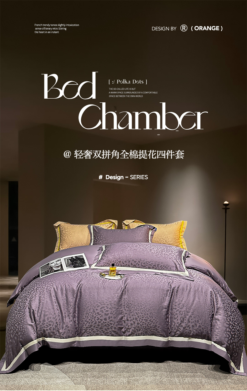 商品名称:2024新款轻奢双拼角全棉提花四件套 豹纹-魅力紫