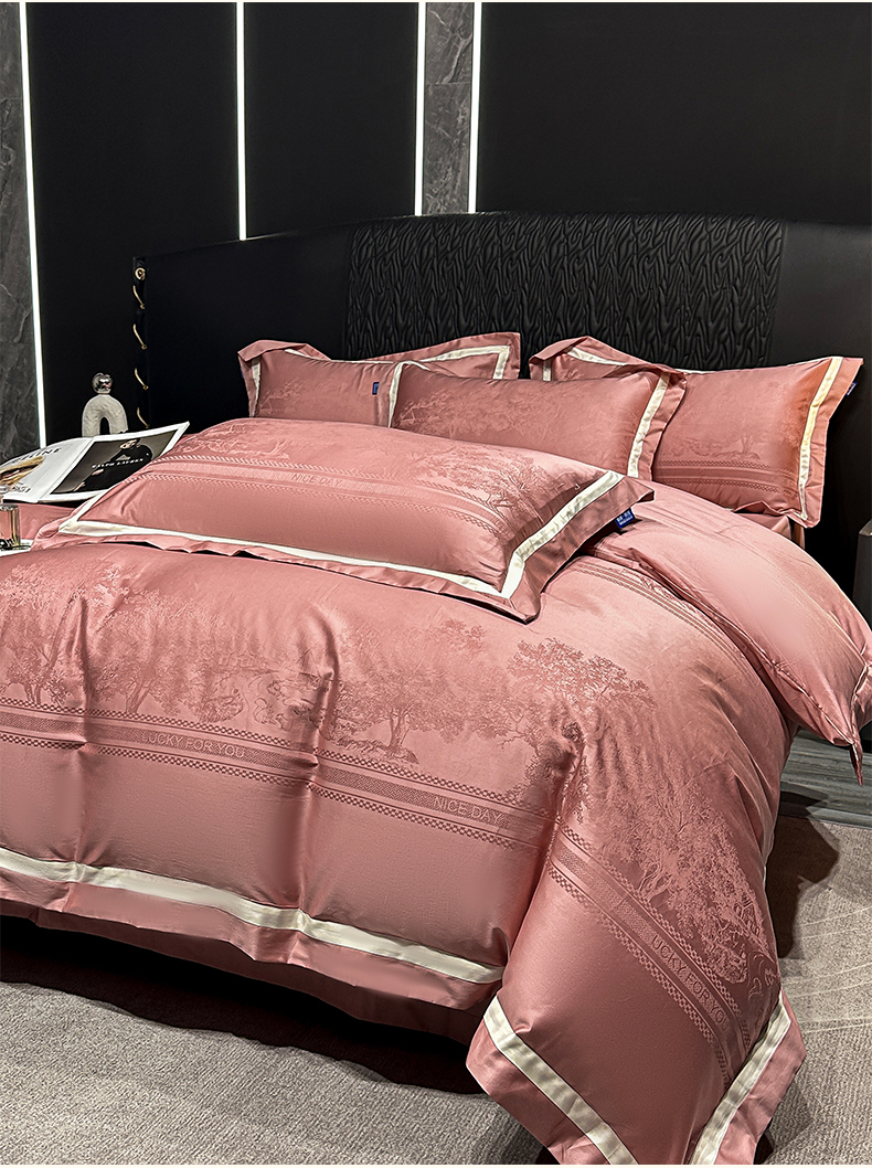 2024新款轻奢双拼角全棉提花四件套 卡格洛-皮粉