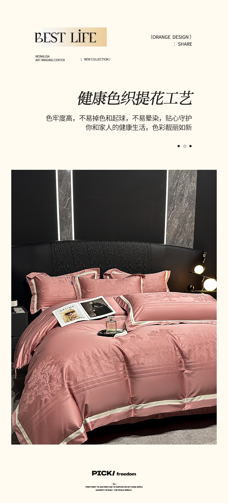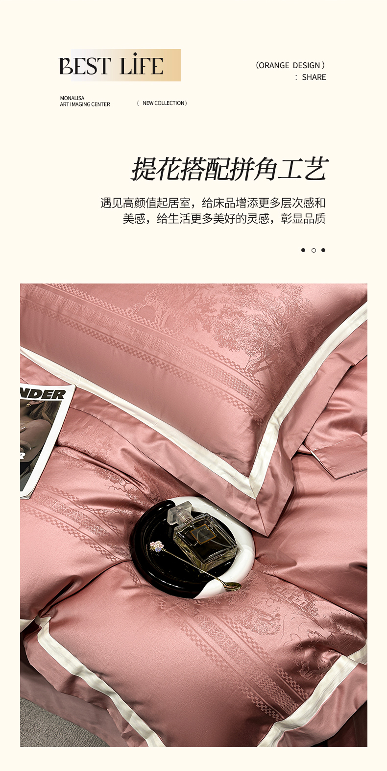 商品名称:2024新款轻奢双拼角全棉提花四件套 卡格洛-皮粉