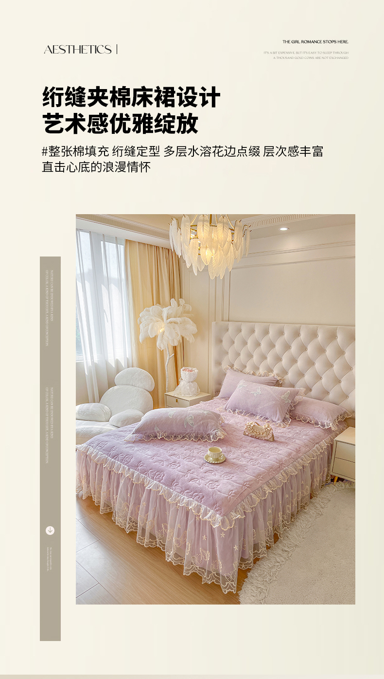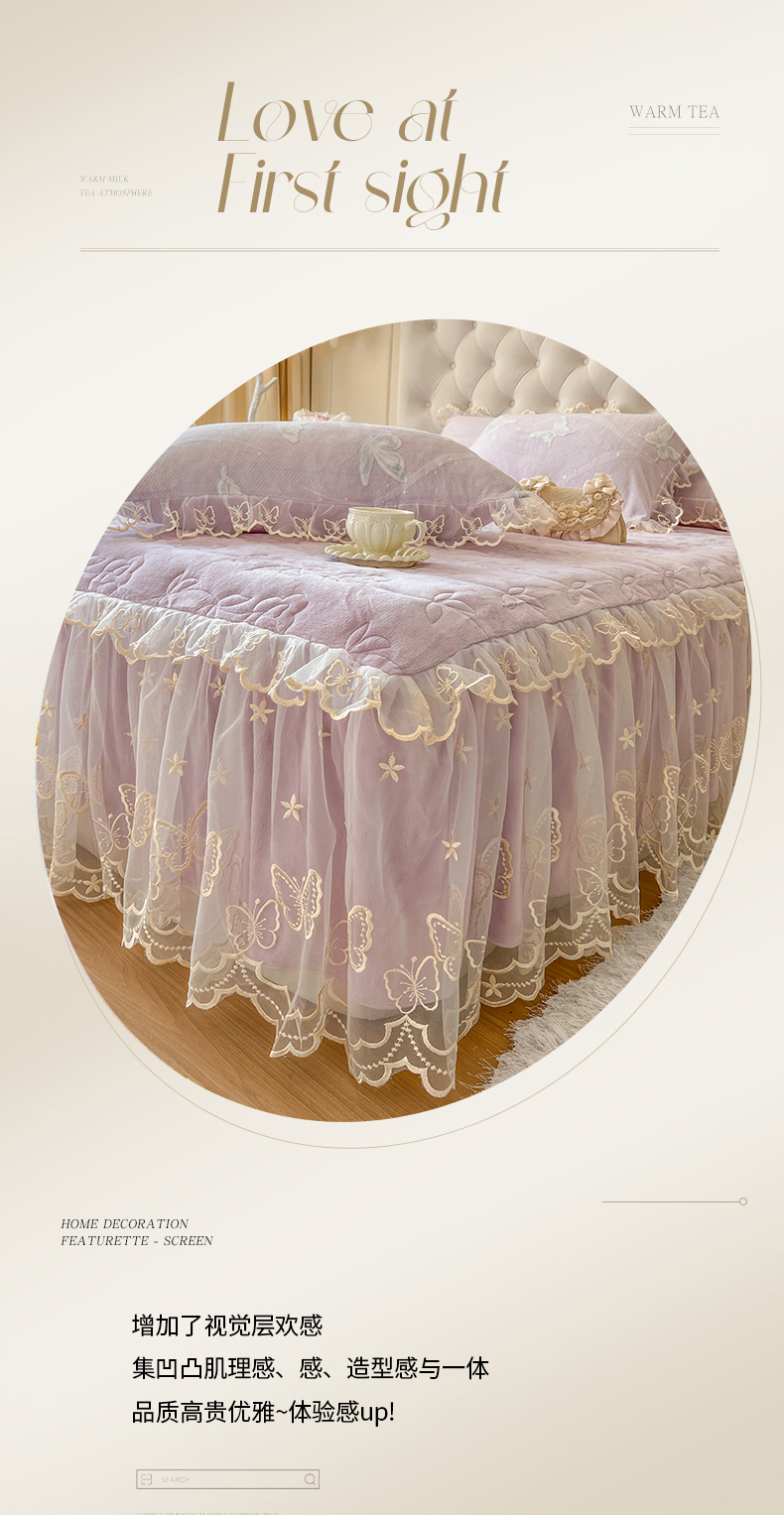 (总)网红馆(ck家纺) 2025新款亲肤舒适牛奶绒蕾丝边床裙四件套-秘密花园,秘密花园-粉色,秘密花园-卡其,秘密花园-米色,秘密花园-紫色