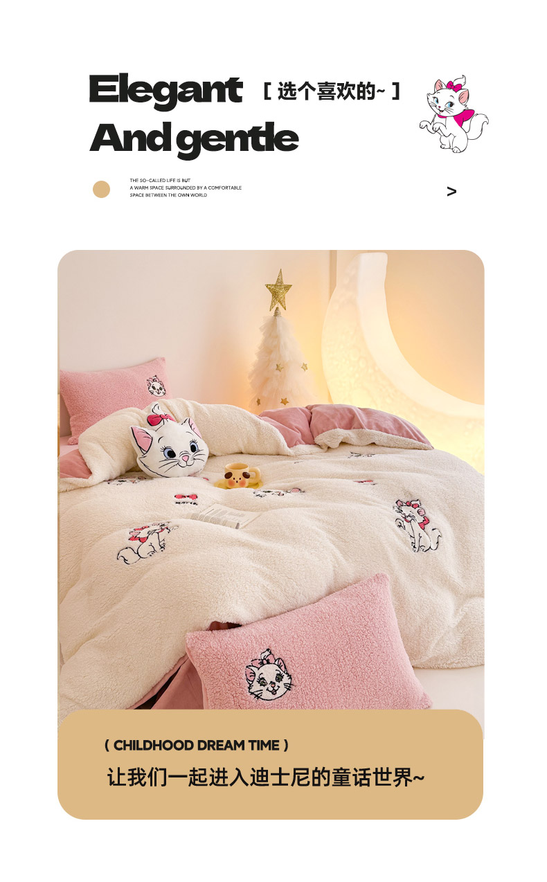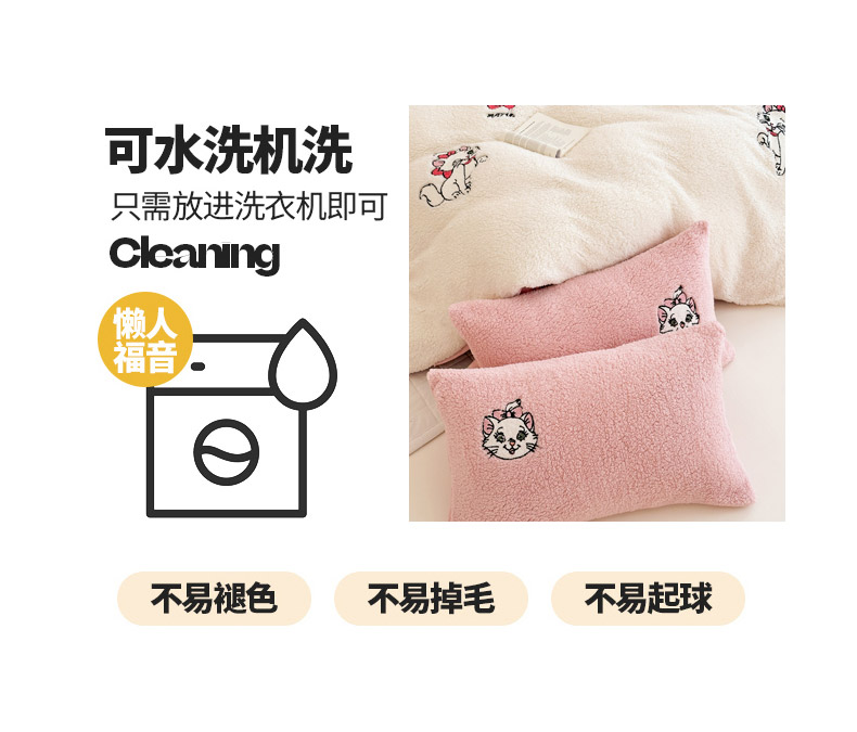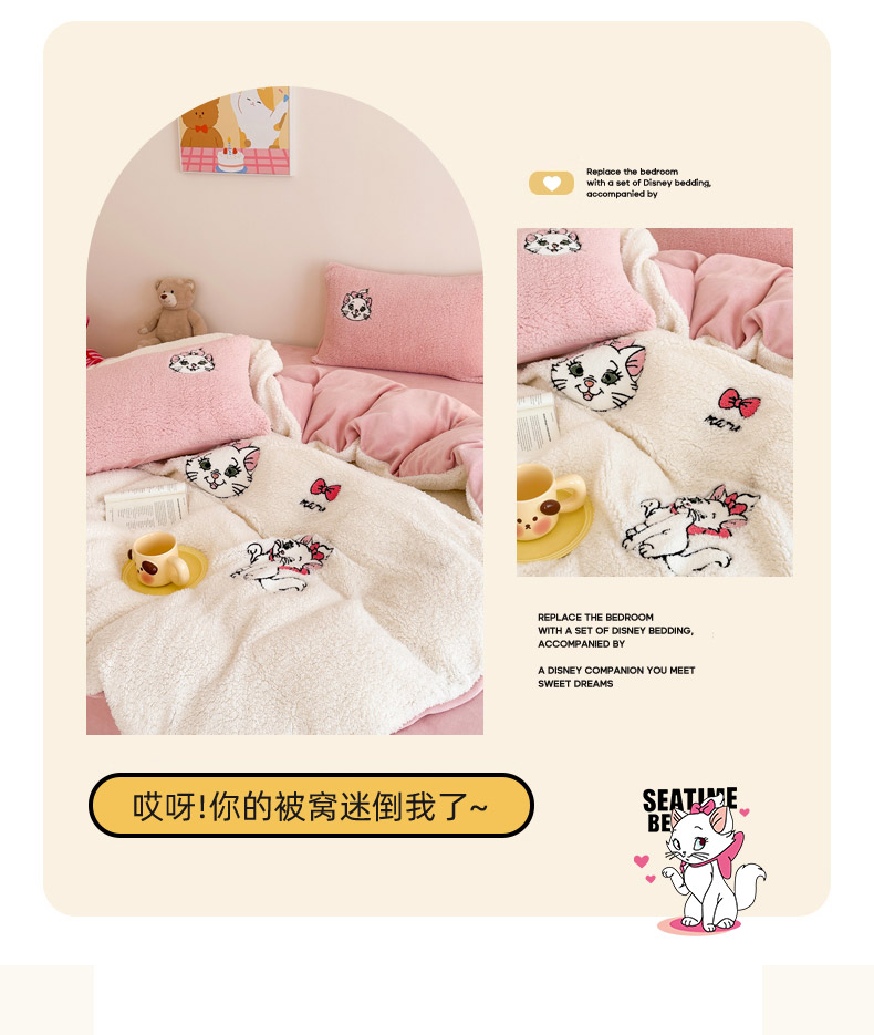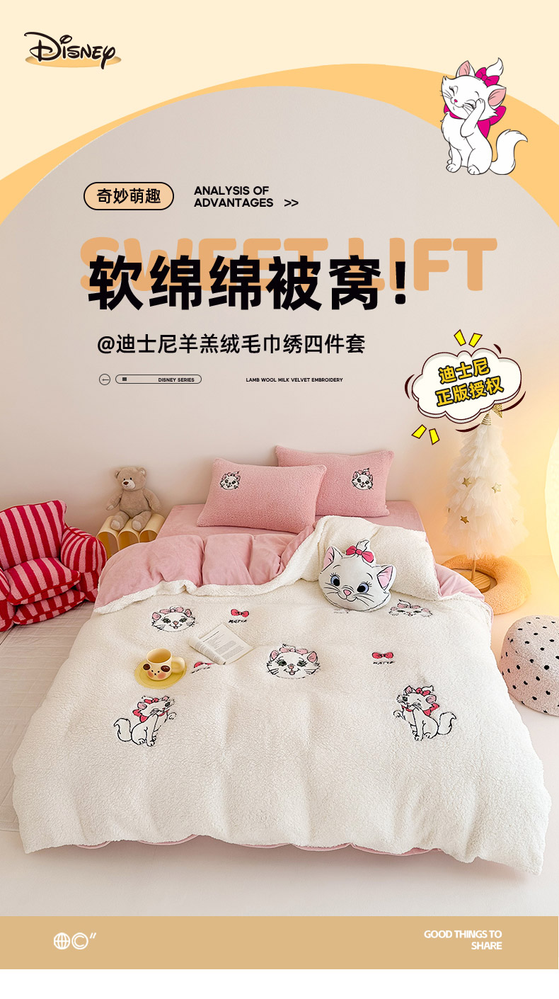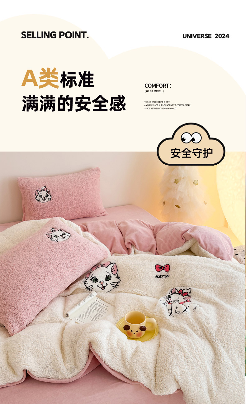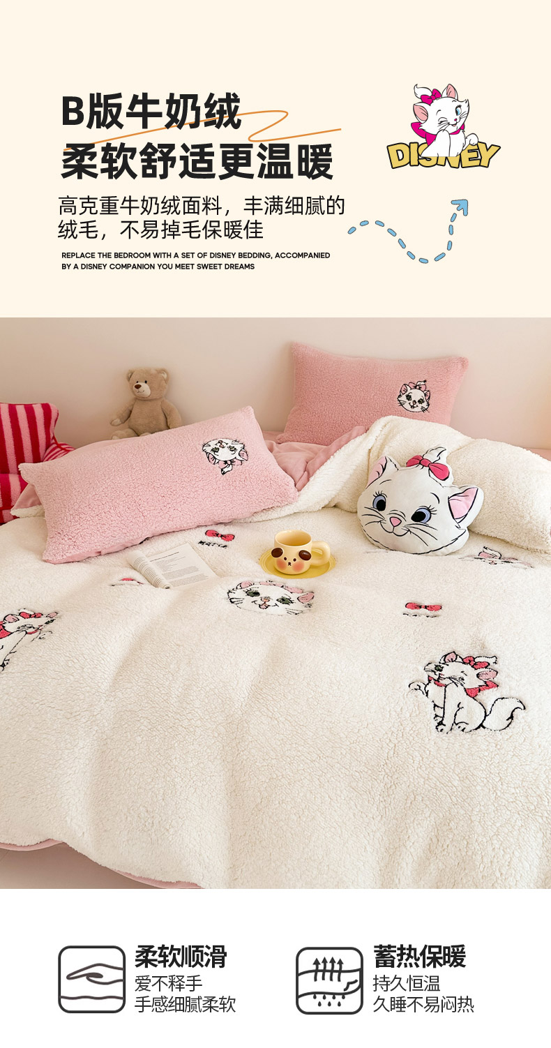 商品名称:乐坊 2024新款羊羔绒毛巾绣牛奶绒四件套冬季加厚保暖 白猫