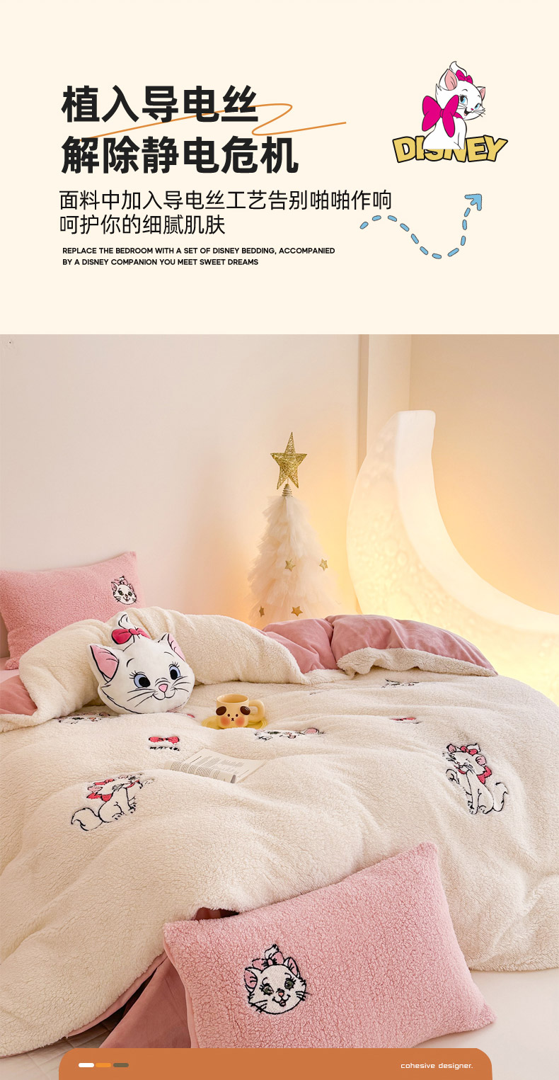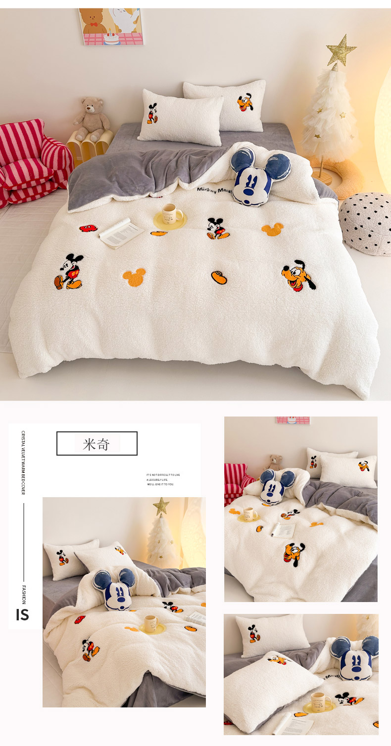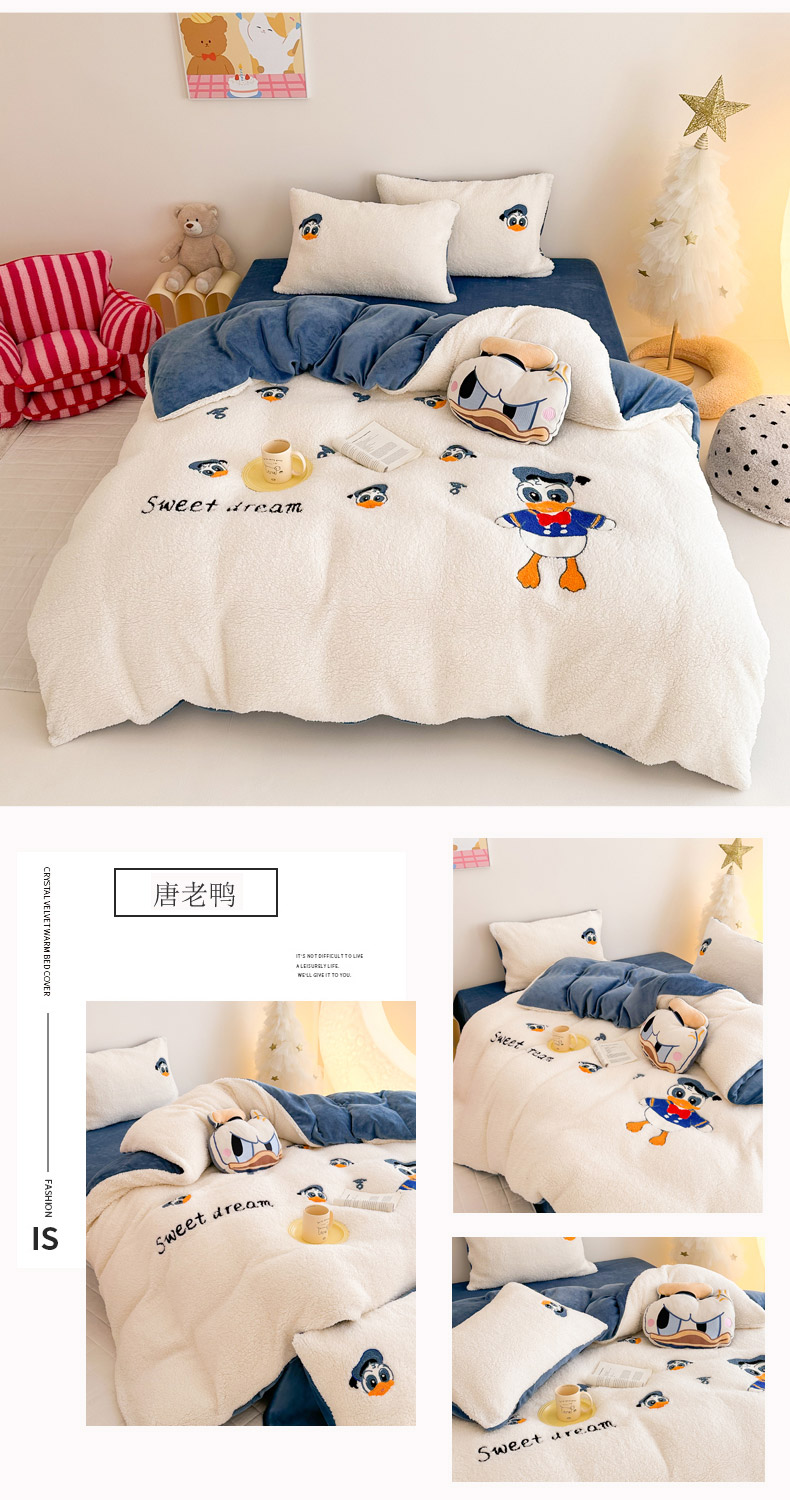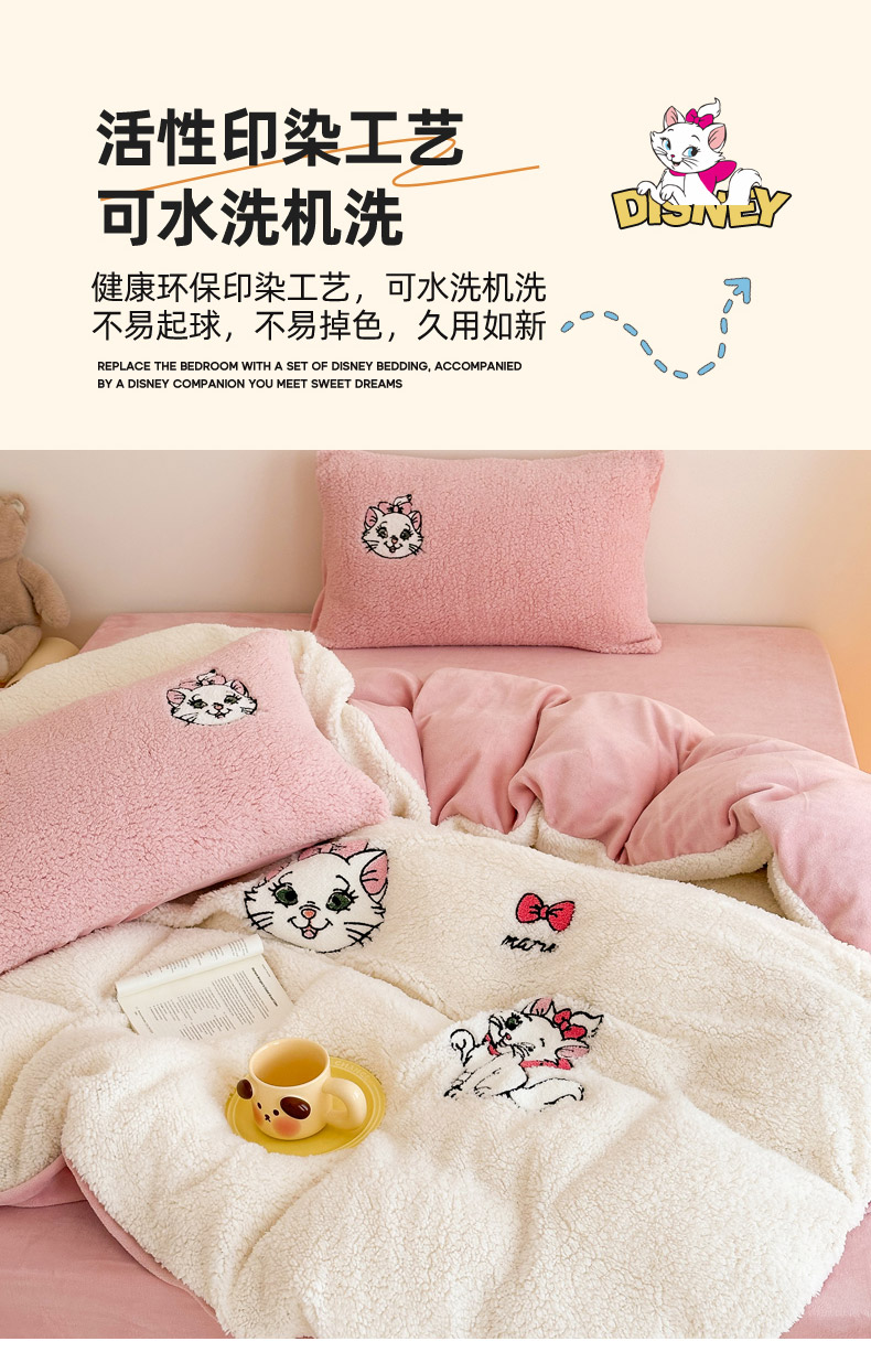 商品名称:乐坊 2024新款羊羔绒毛巾绣牛奶绒四件套冬季加厚保暖 白猫