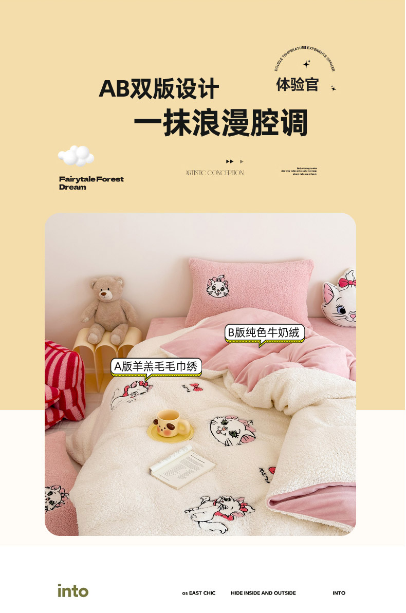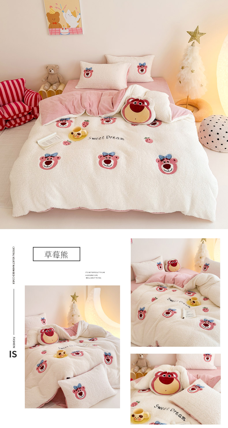 (总)乐坊 2025新款300g高克重兔绒卡通贴布绣牛奶绒四件套冬季加厚保暖,萌宠猫咪白粉,萌宠猫咪粉,可爱兔兔,快乐企鹅,美拉德狗狗,熊熊腊肠狗