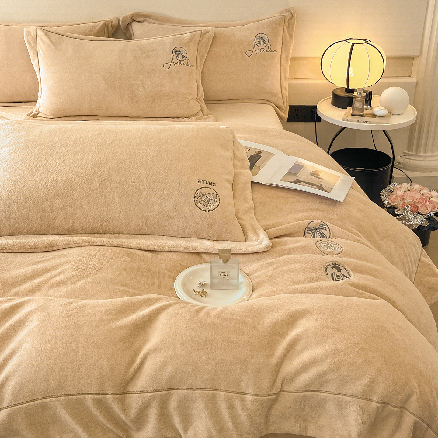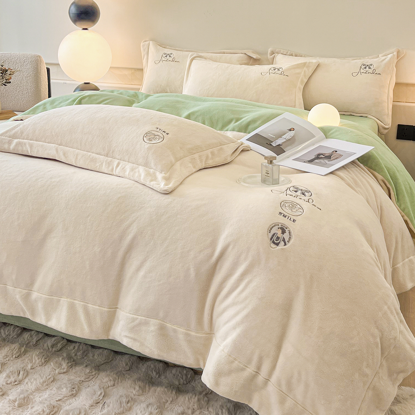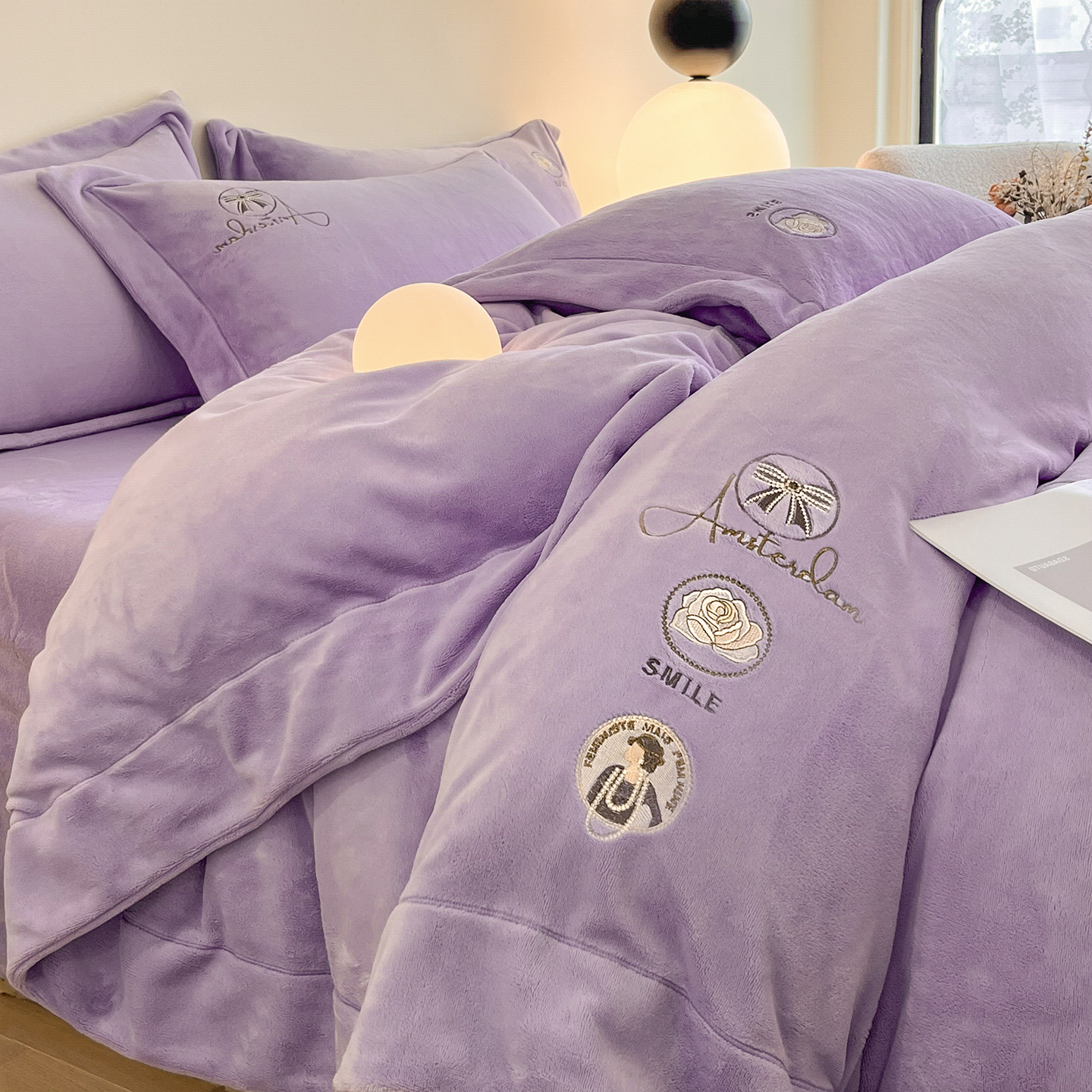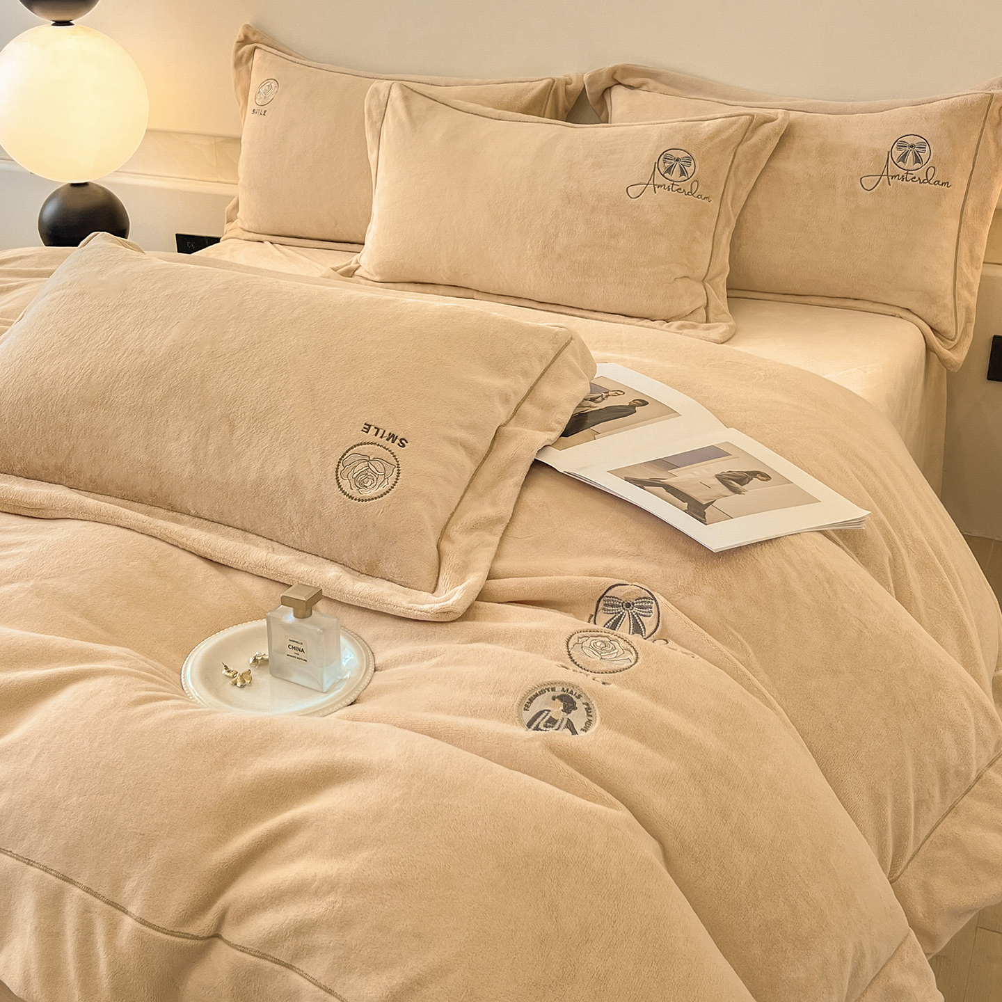 (总)控价 2025年新款240克全消光A类刺绣牛奶绒四件套-伊菲