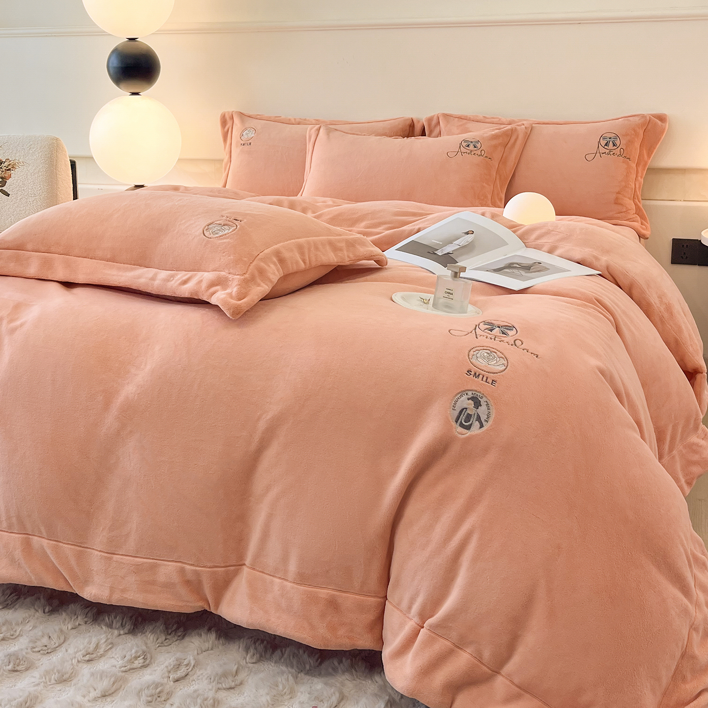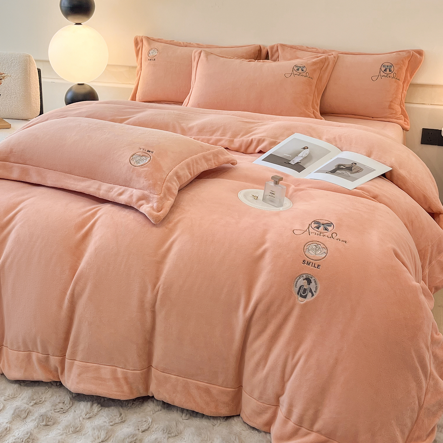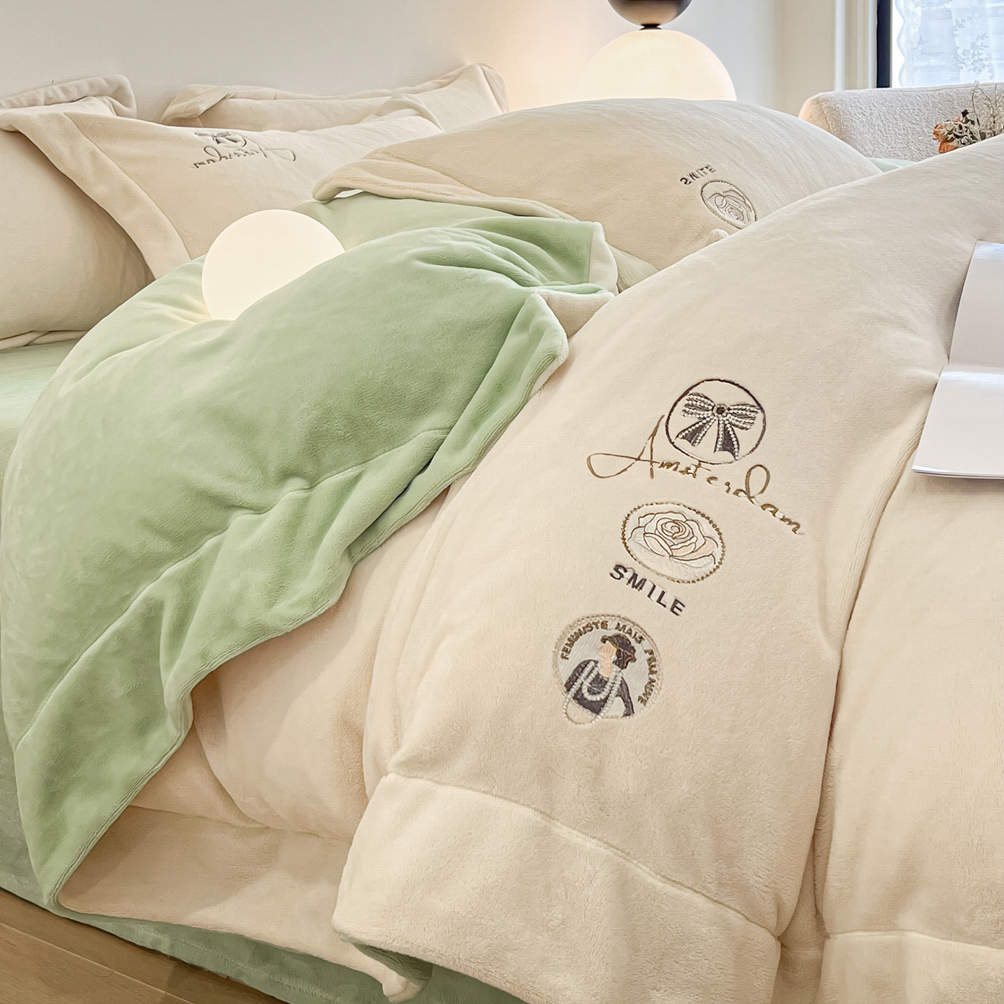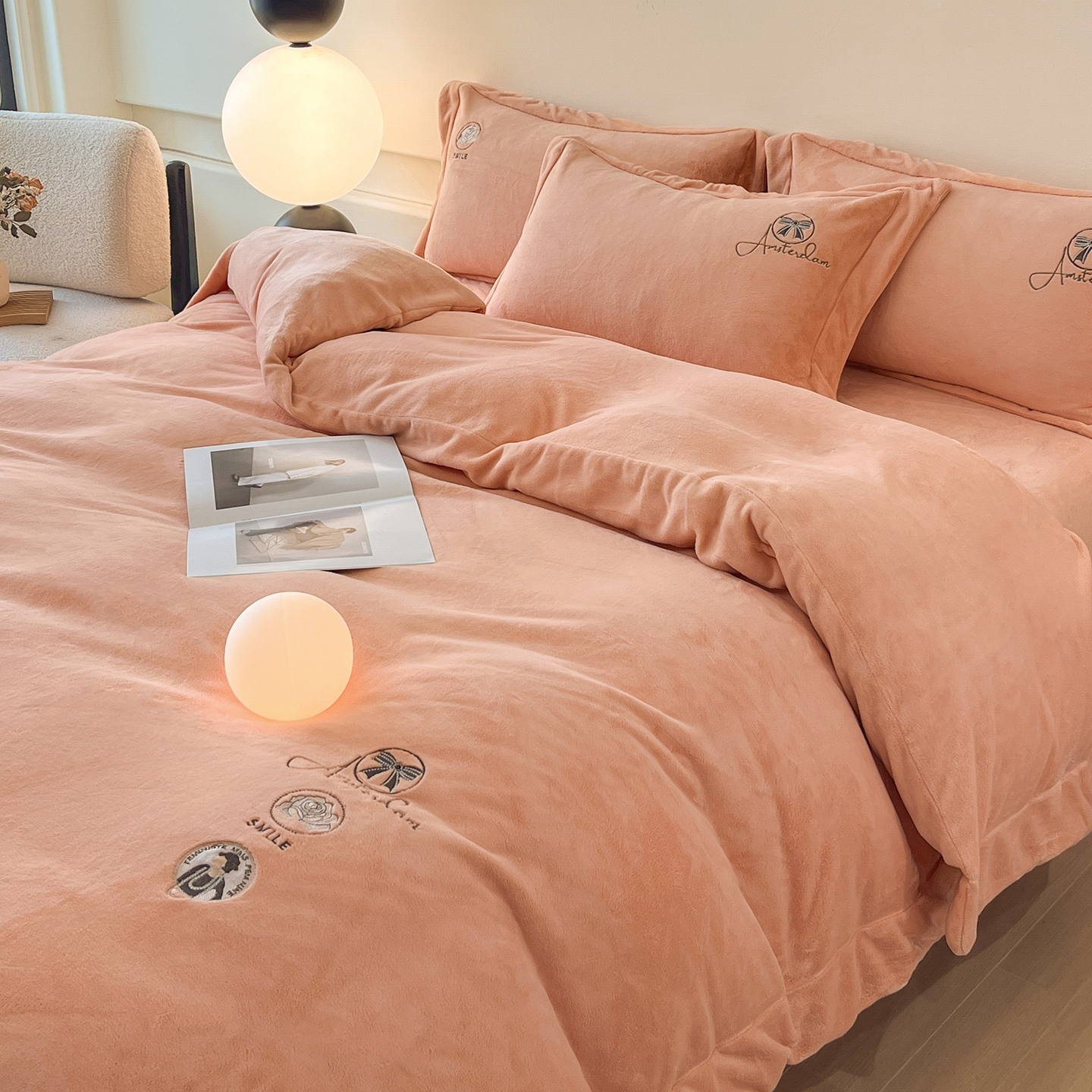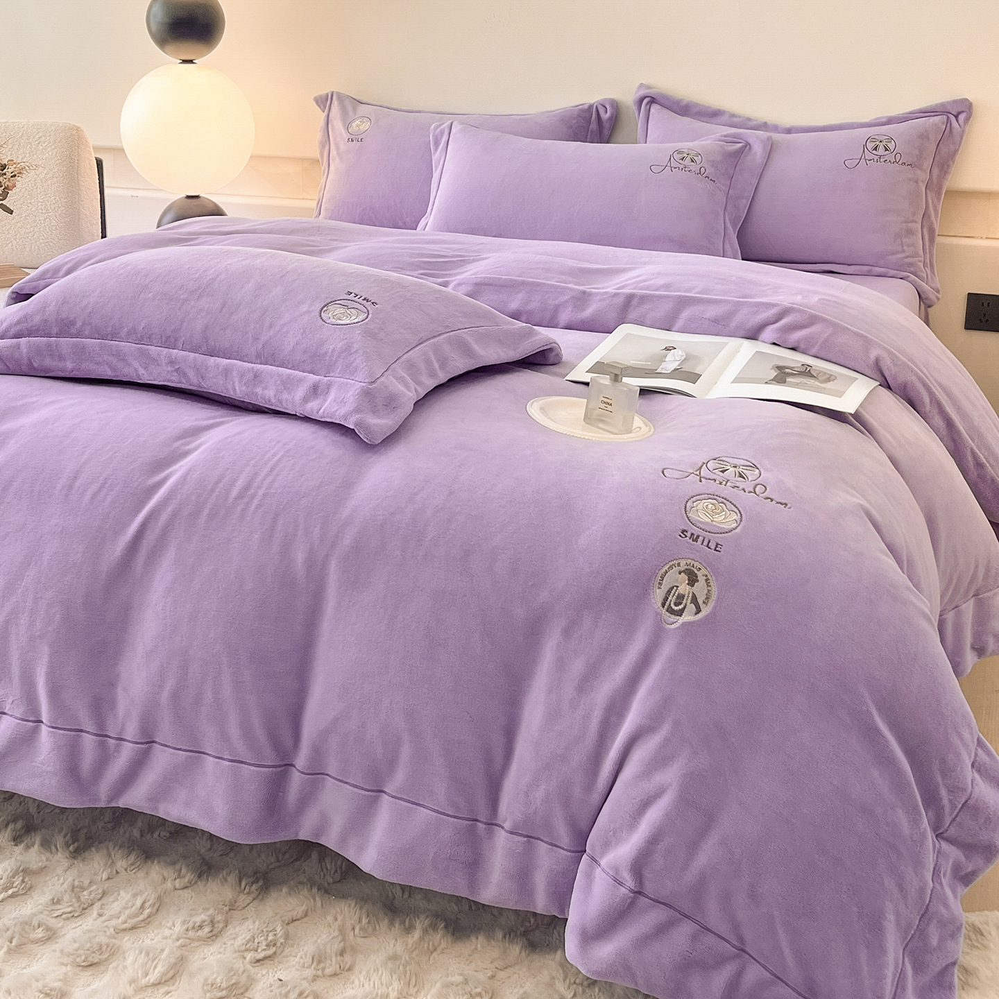 (总)控价 2025年新款240克全消光A类刺绣牛奶绒四件套-伊菲