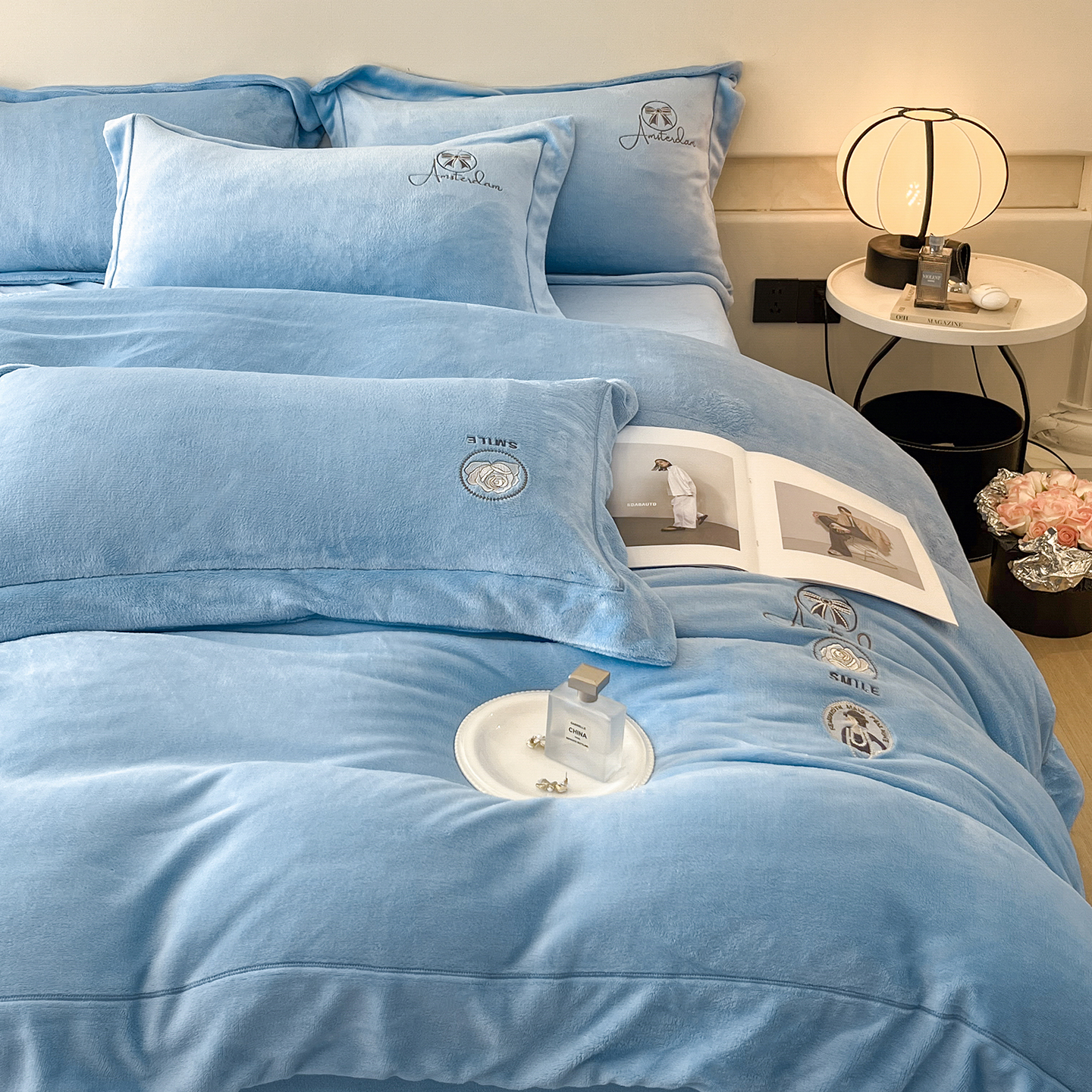 商品名称:(总)控价 2025年新款240克全消光A类刺绣牛奶绒四件套-伊菲