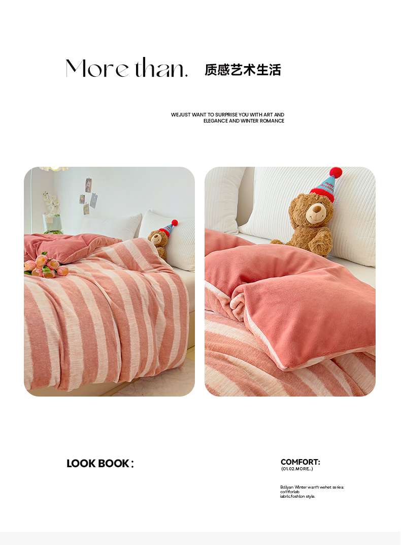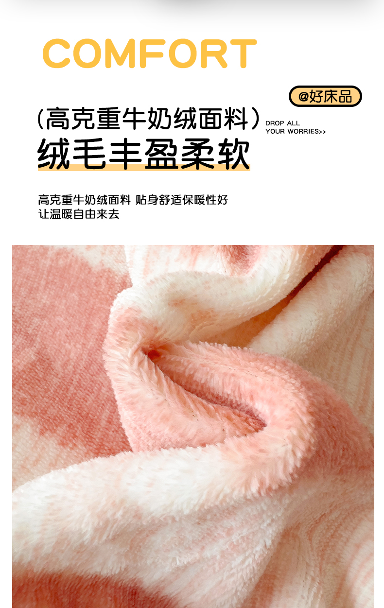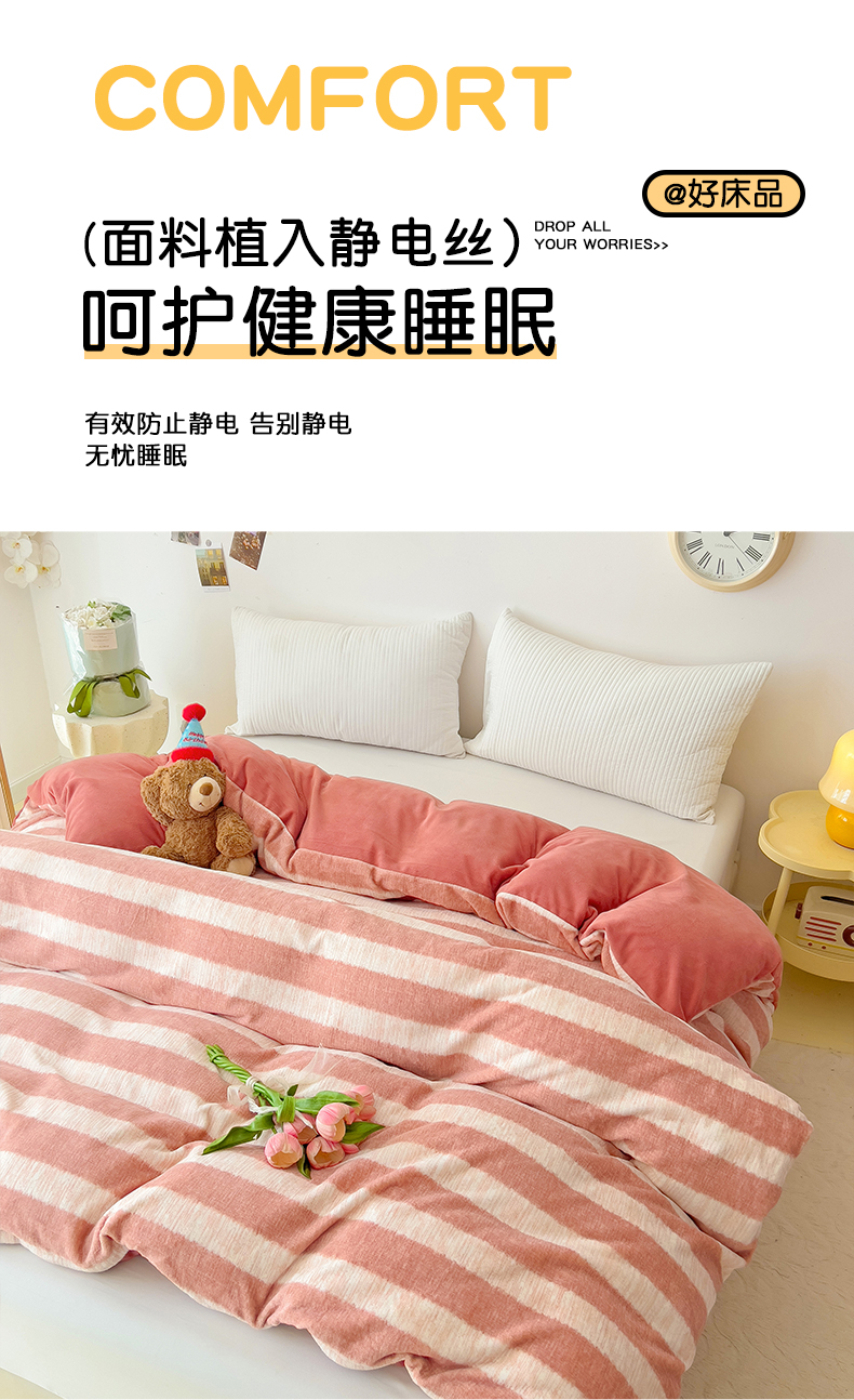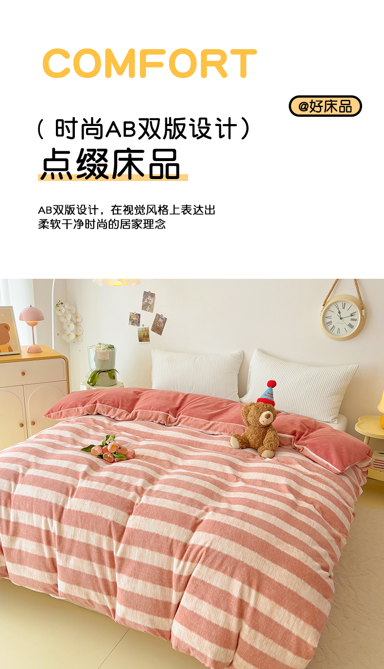 • 91家纺网 家纺一手货源 找家纺 大柏树 2025新款A类高克重亲肤舒适牛奶绒印花四件套-单被套可定制 竖条肌理-粉