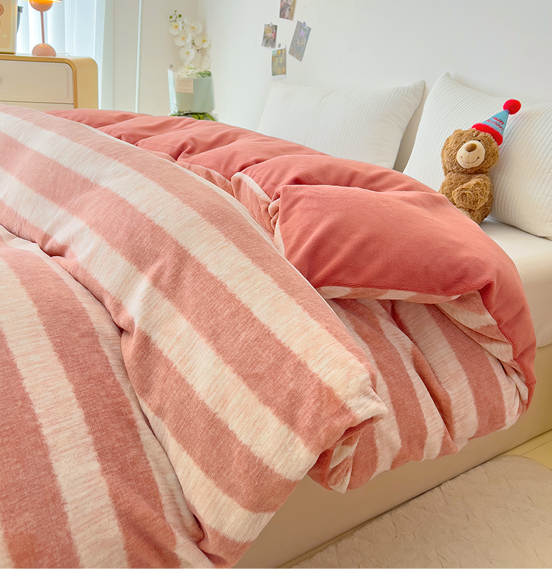 大柏树 2025新款A类高克重亲肤舒适牛奶绒印花四件套-单被套可定制 竖条肌理-粉