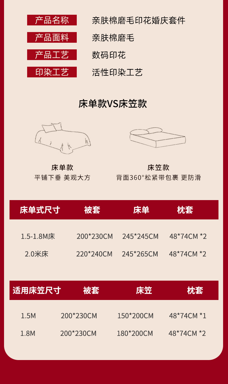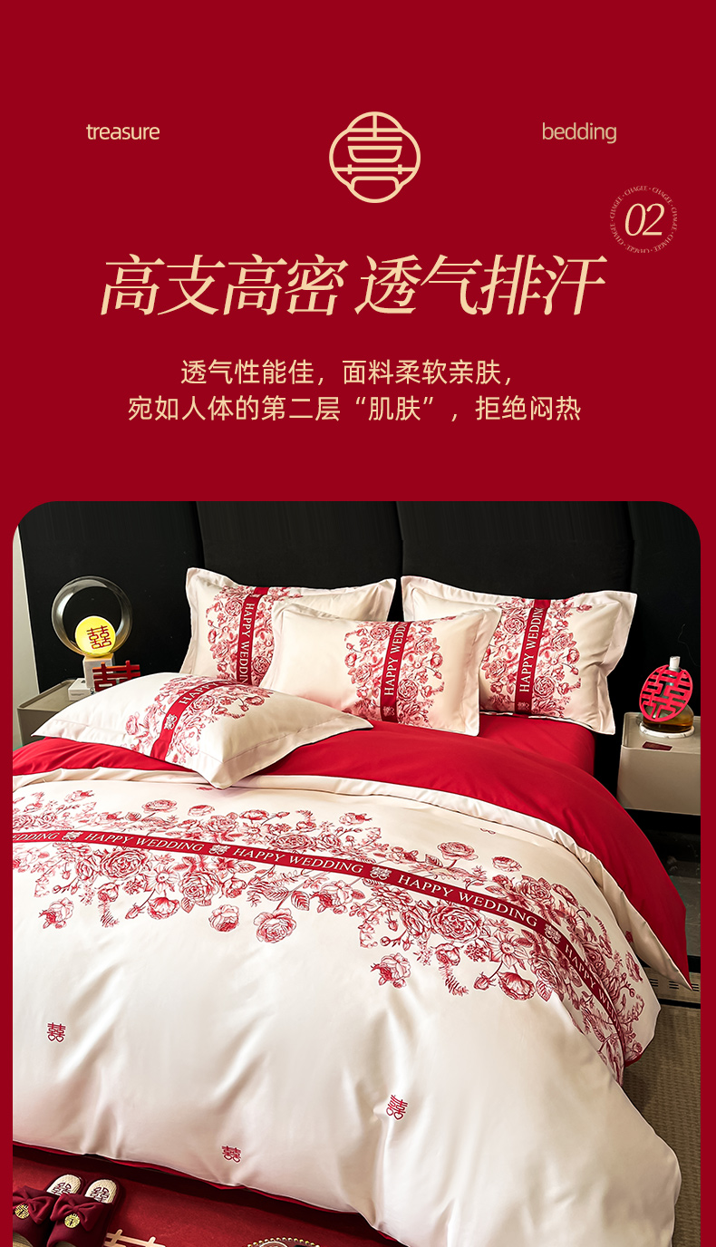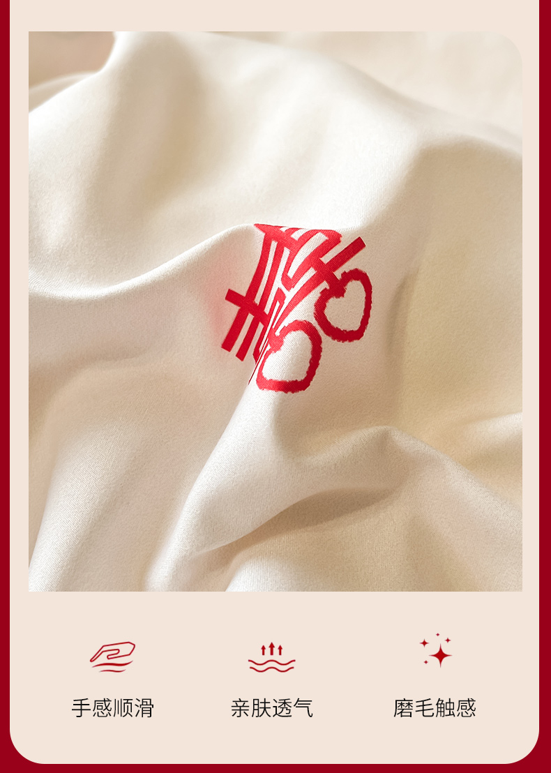 商品名称:金牛座家纺 2025新款高克重亲肤棉磨毛数码印花婚庆四件套配高档礼盒 喜上眉梢(奶白)