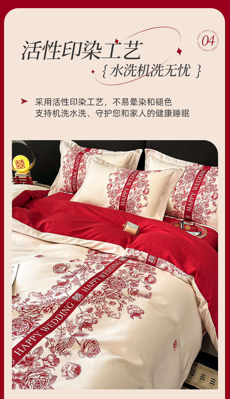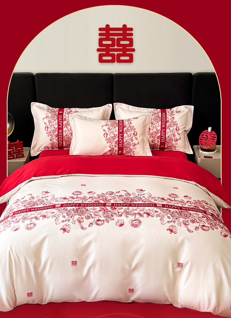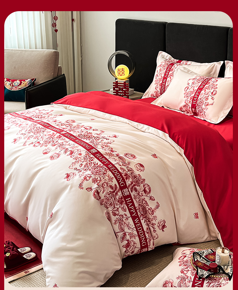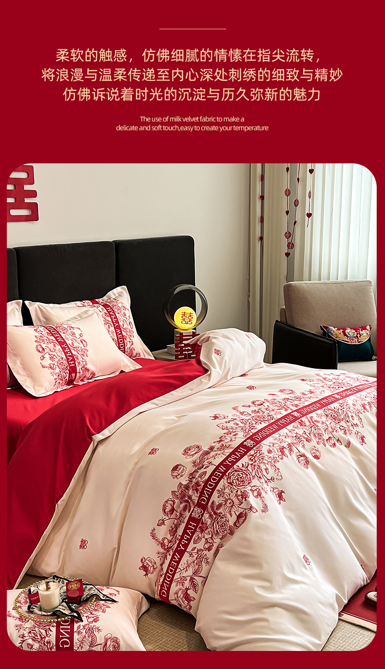 金牛座家纺 2025新款高克重亲肤棉磨毛数码印花婚庆四件套配高档礼盒 喜上眉梢(奶白)