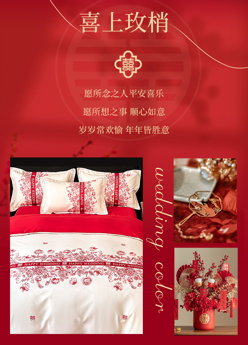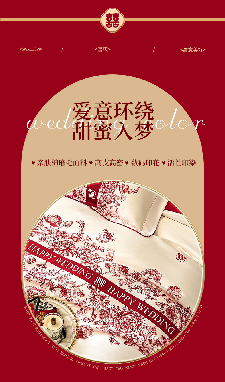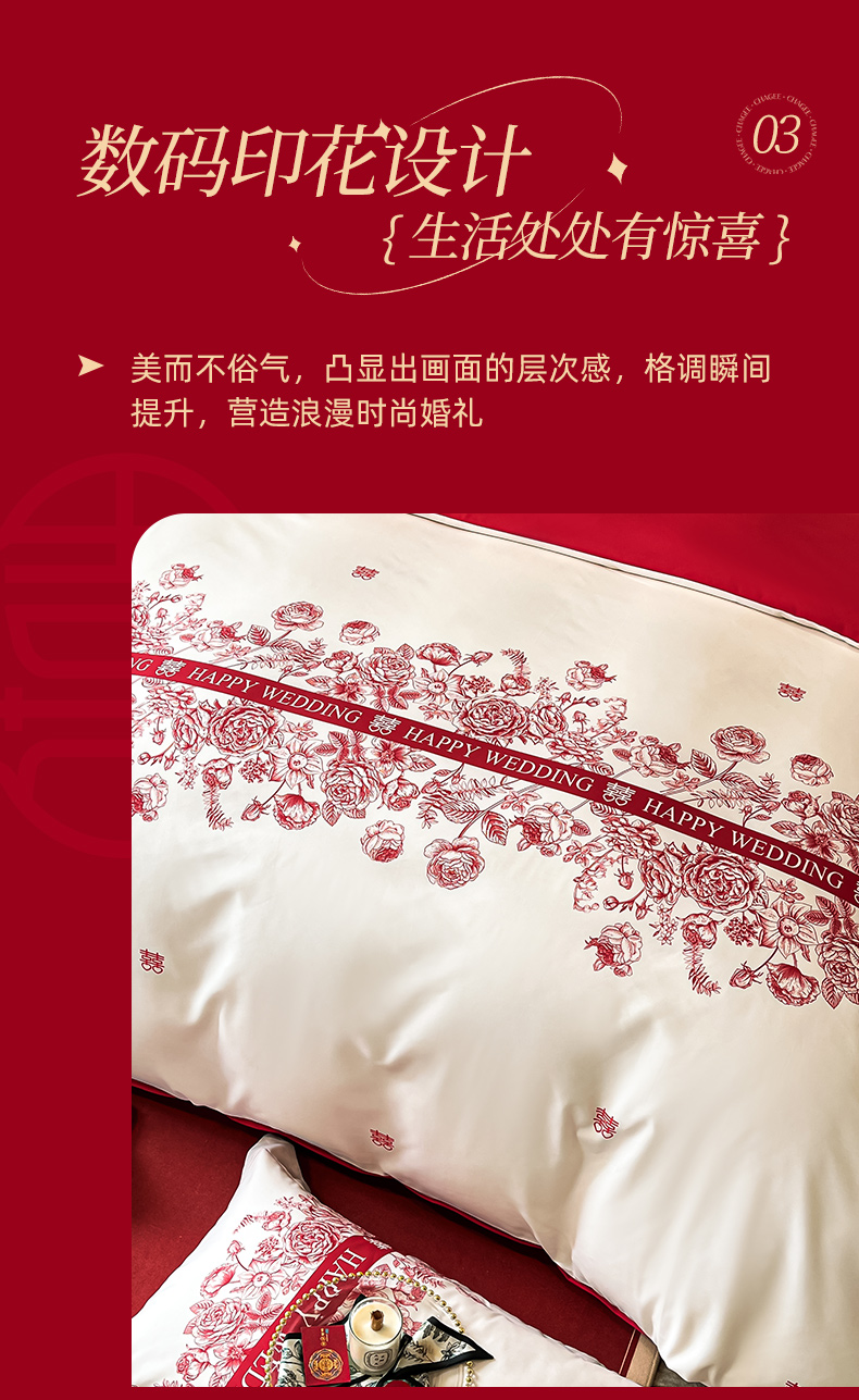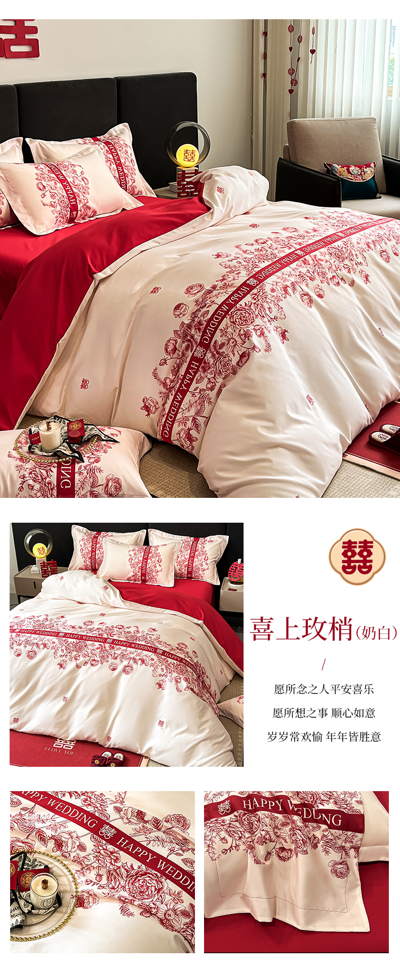 金牛座家纺 2025新款高克重亲肤棉磨毛数码印花婚庆四件套配高档礼盒 喜上眉梢(奶白)