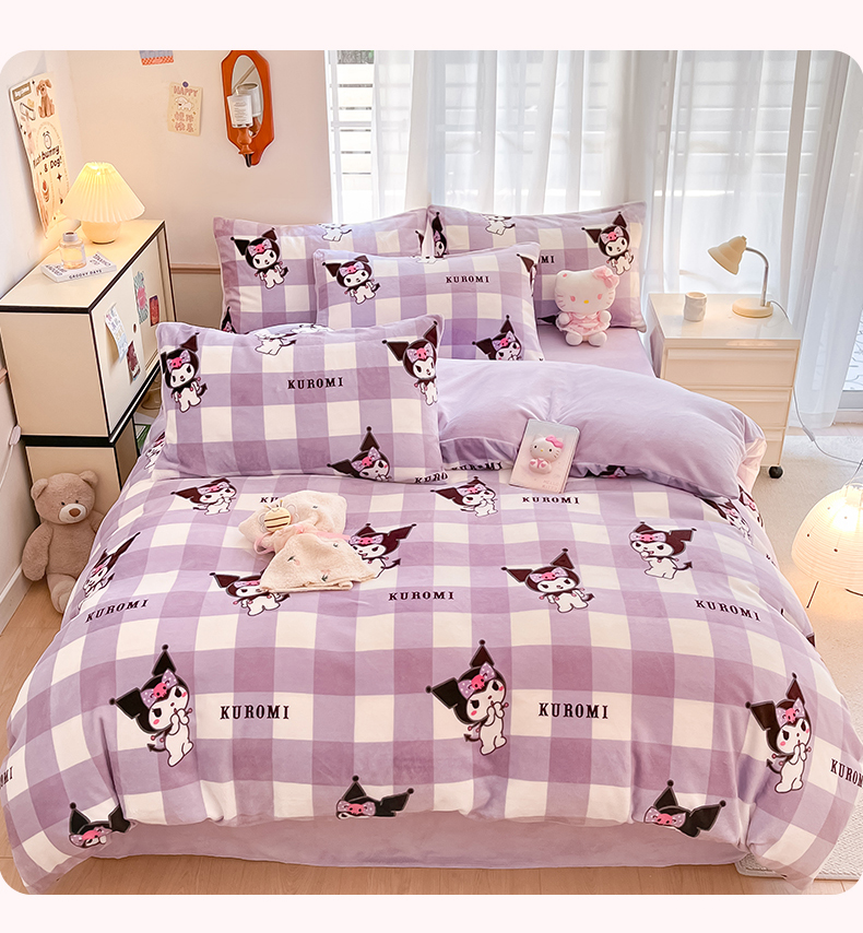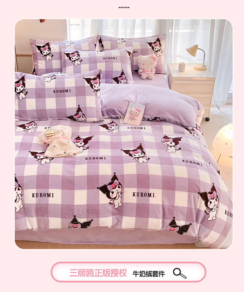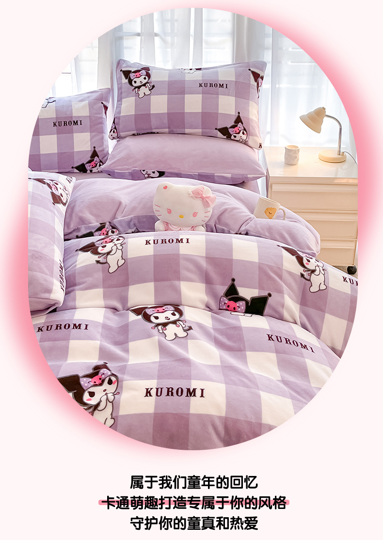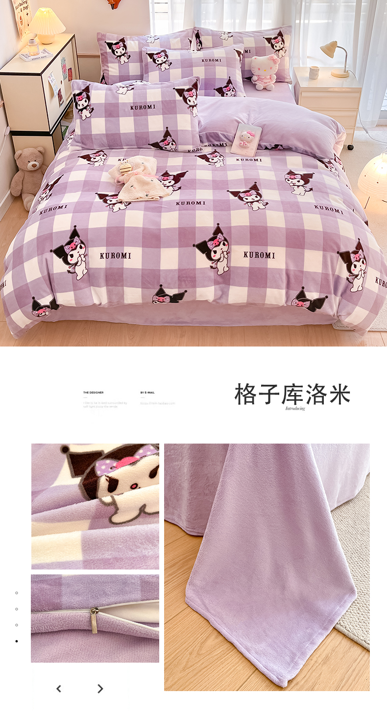 商品名称:星座家纺 2025新款三丽鸥小版牛奶绒四件套 格子库洛米