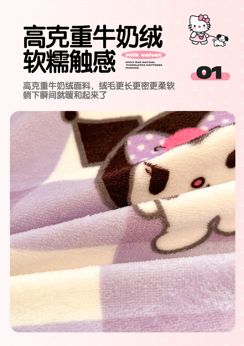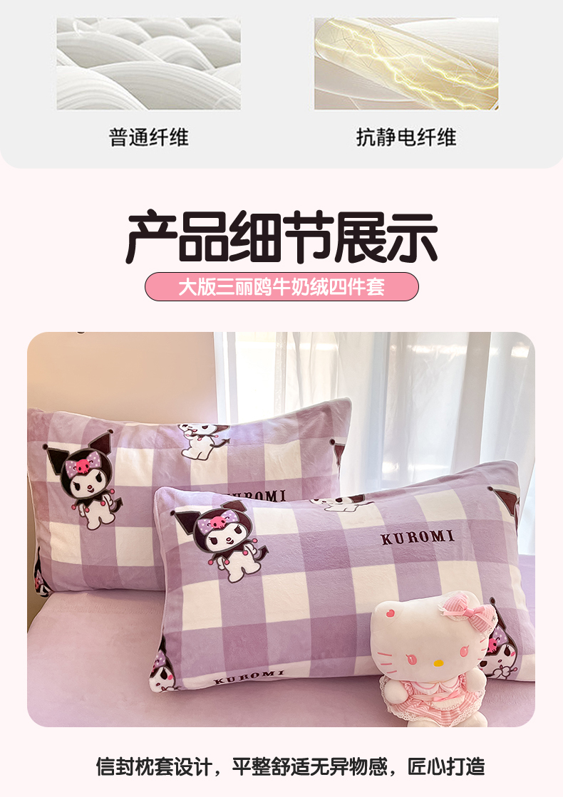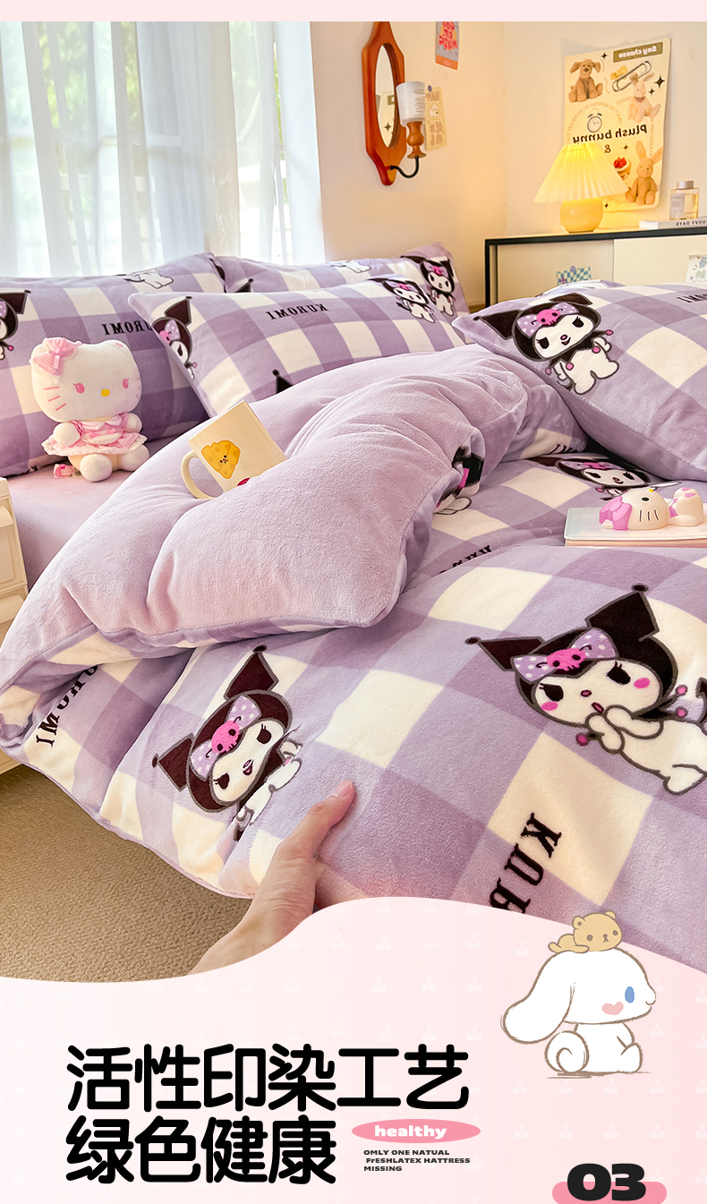 商品名称:星座家纺 2025新款三丽鸥小版牛奶绒四件套 格子库洛米