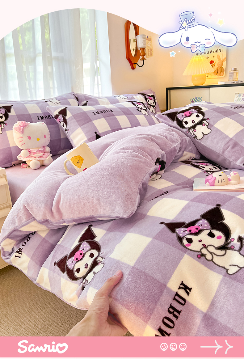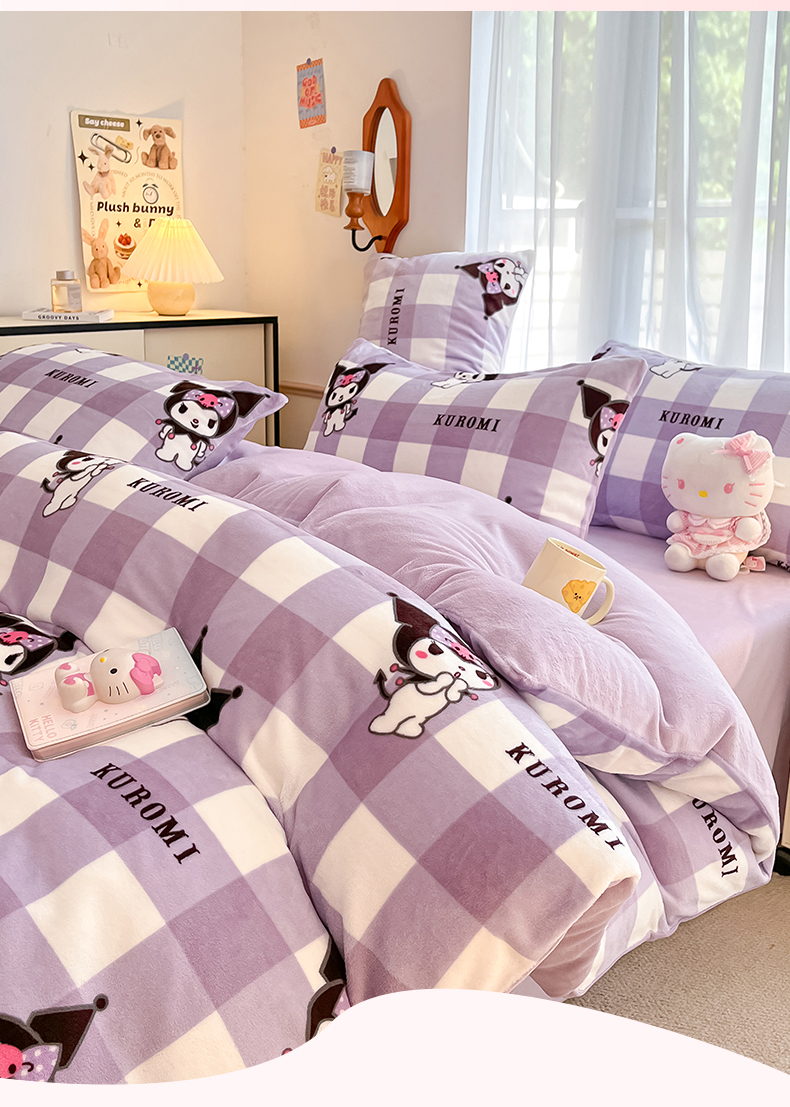 星座家纺 2025新款三丽鸥小版牛奶绒四件套 格子库洛米
