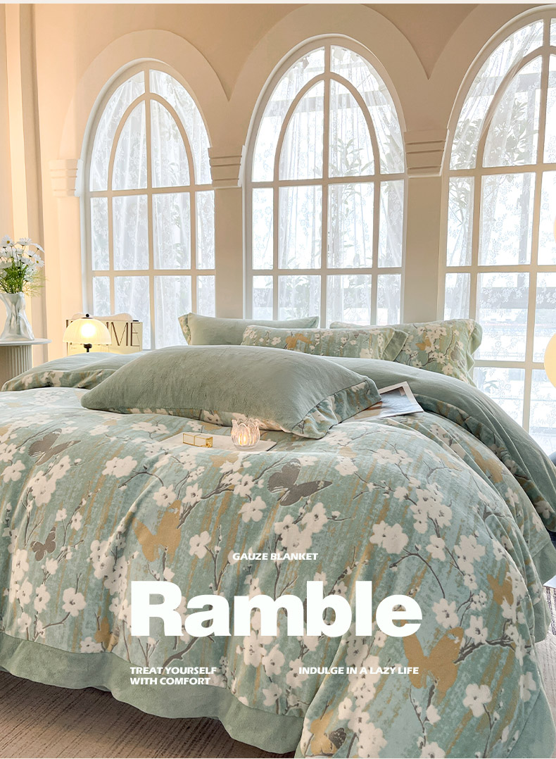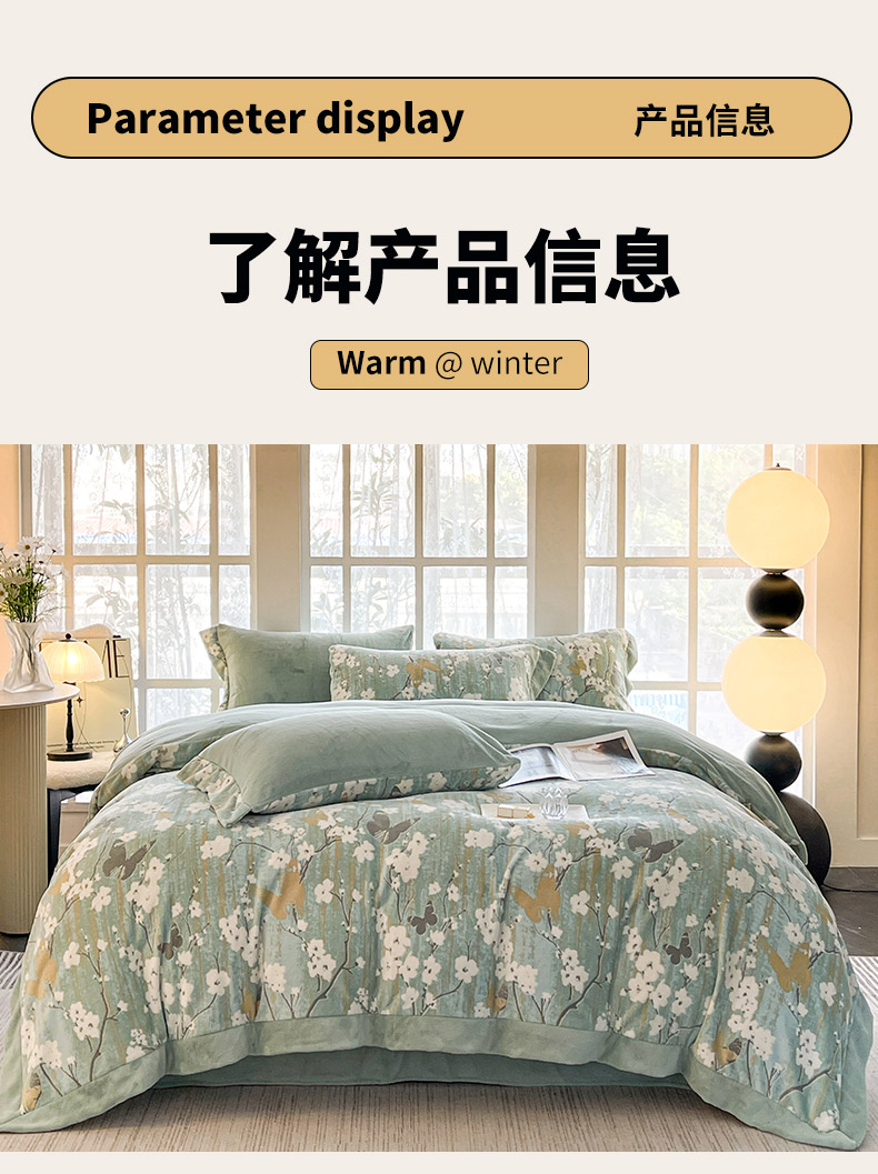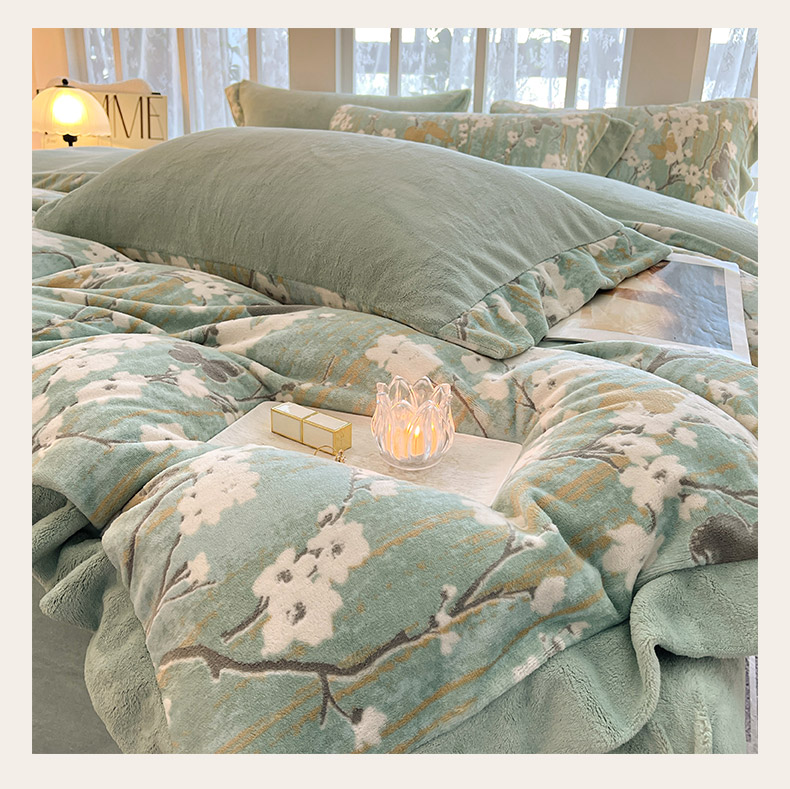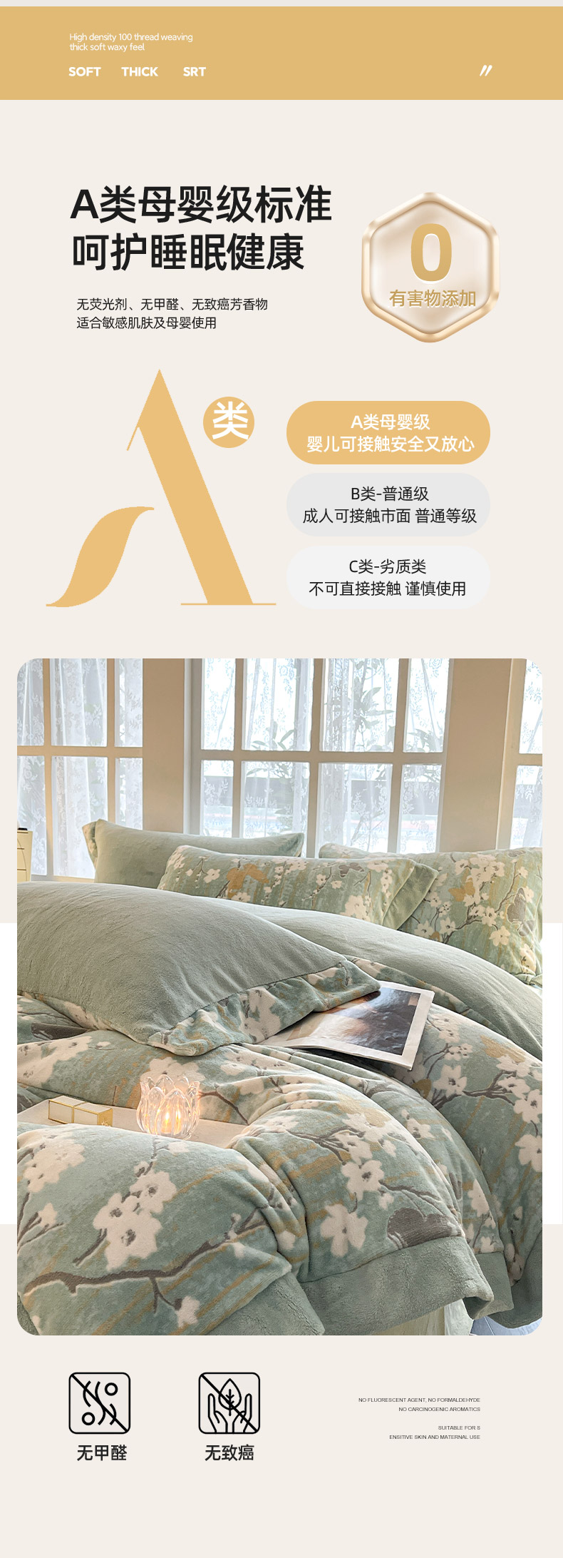 商品名称: 秋冬9斤重加厚保暖牛奶绒四件套刺绣数码宝宝绒被套床单床笠床上用品 塞尔纳-仙踪绿