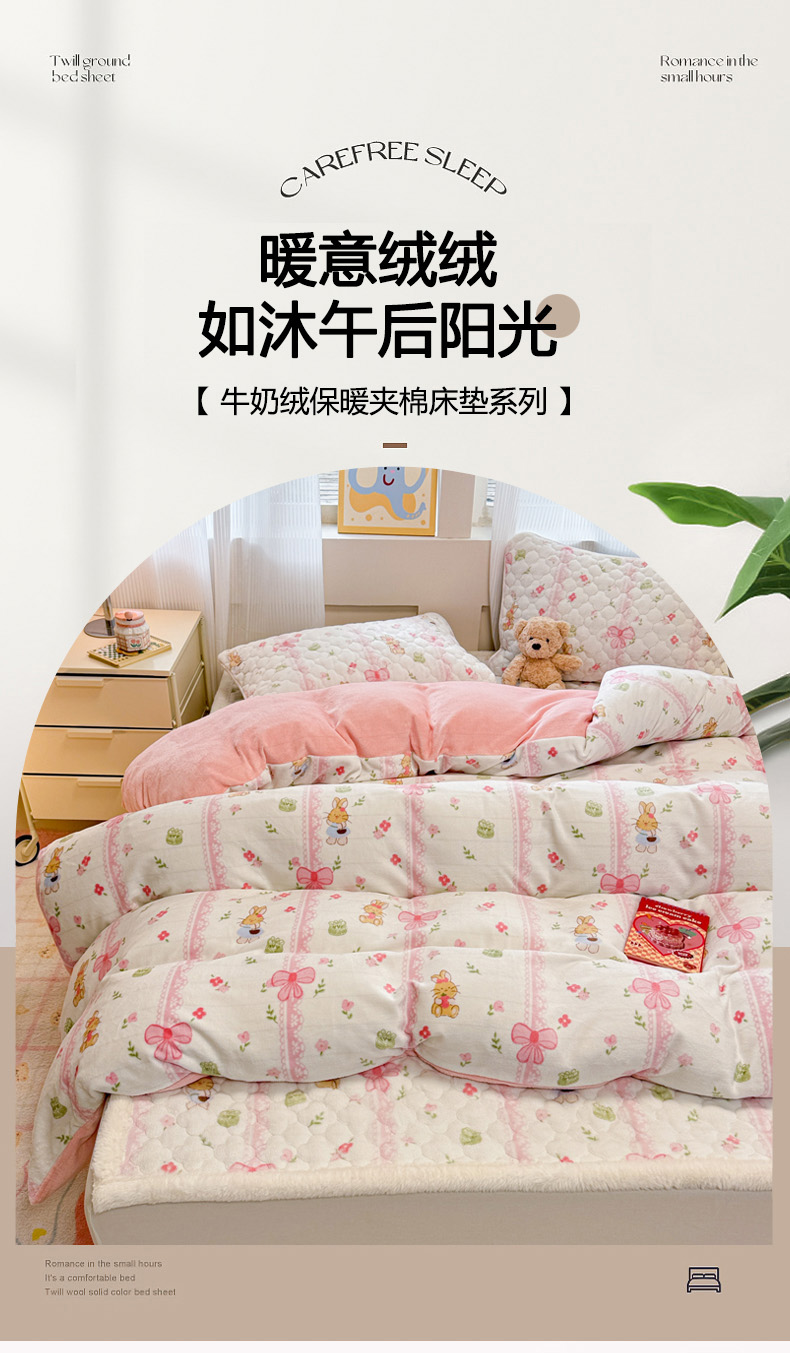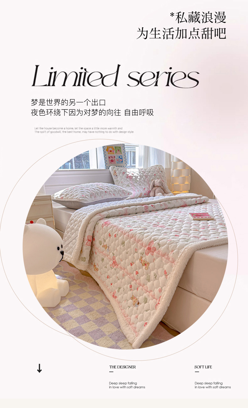 当前位置: 91家纺网 > 商品网购 > 床品套件 > 四件套 > 其它四件套 > 慕尚家纺 2025牛奶绒床盖床褥被套三件套四件套 床垫-蝴蝶小兔