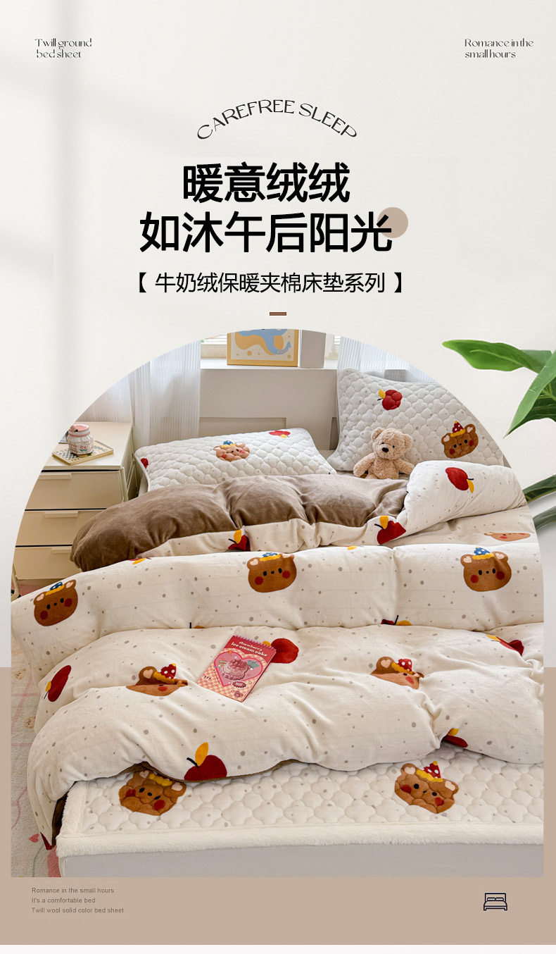 当前位置: 91家纺网 > 商品网购 > 床品套件 > 四件套 > 其它四件套 > 慕尚家纺 2025牛奶绒床盖床褥被套三件套四件套 床垫-苹果小熊