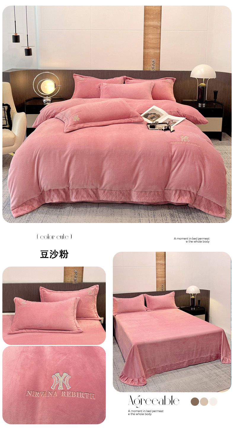 商品名称:星尚家纺 2024新款全消光A类230g牛奶绒四件套-维也纳 豆沙粉