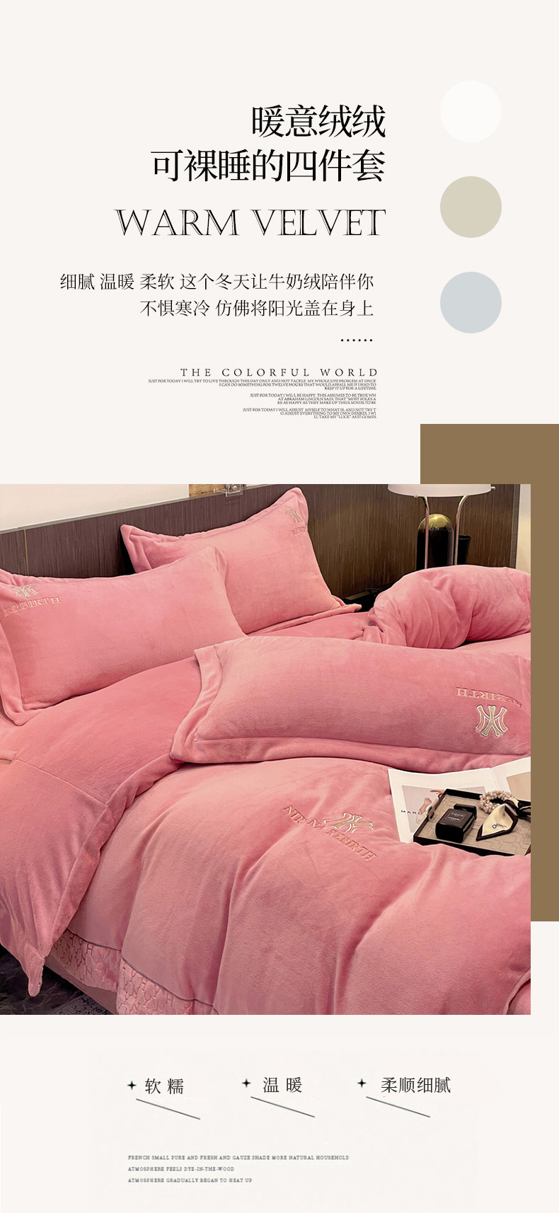 (总)星尚家纺 2024新款全消光230g牛奶绒刺绣保暖四件套-花漾,晨雾绿,豆沙粉,樱花粉