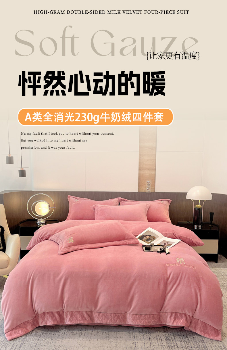 星尚家纺 2024新款全消光A类230g牛奶绒四件套-维也纳 豆沙粉